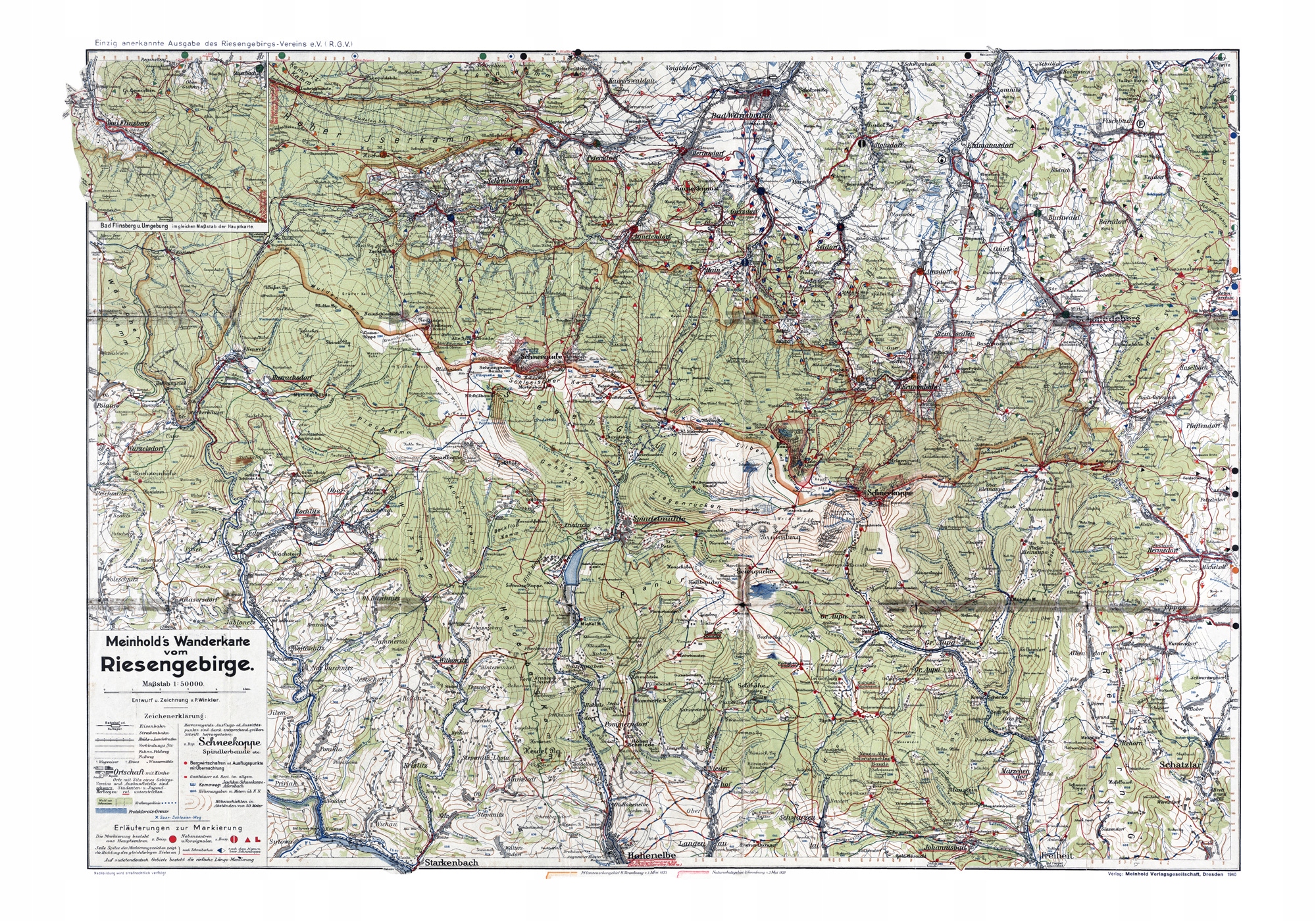 Репродукція карти 1940 року: Туристична карта Карконоше 1940 року, підготовлена Петером Вінклером.
