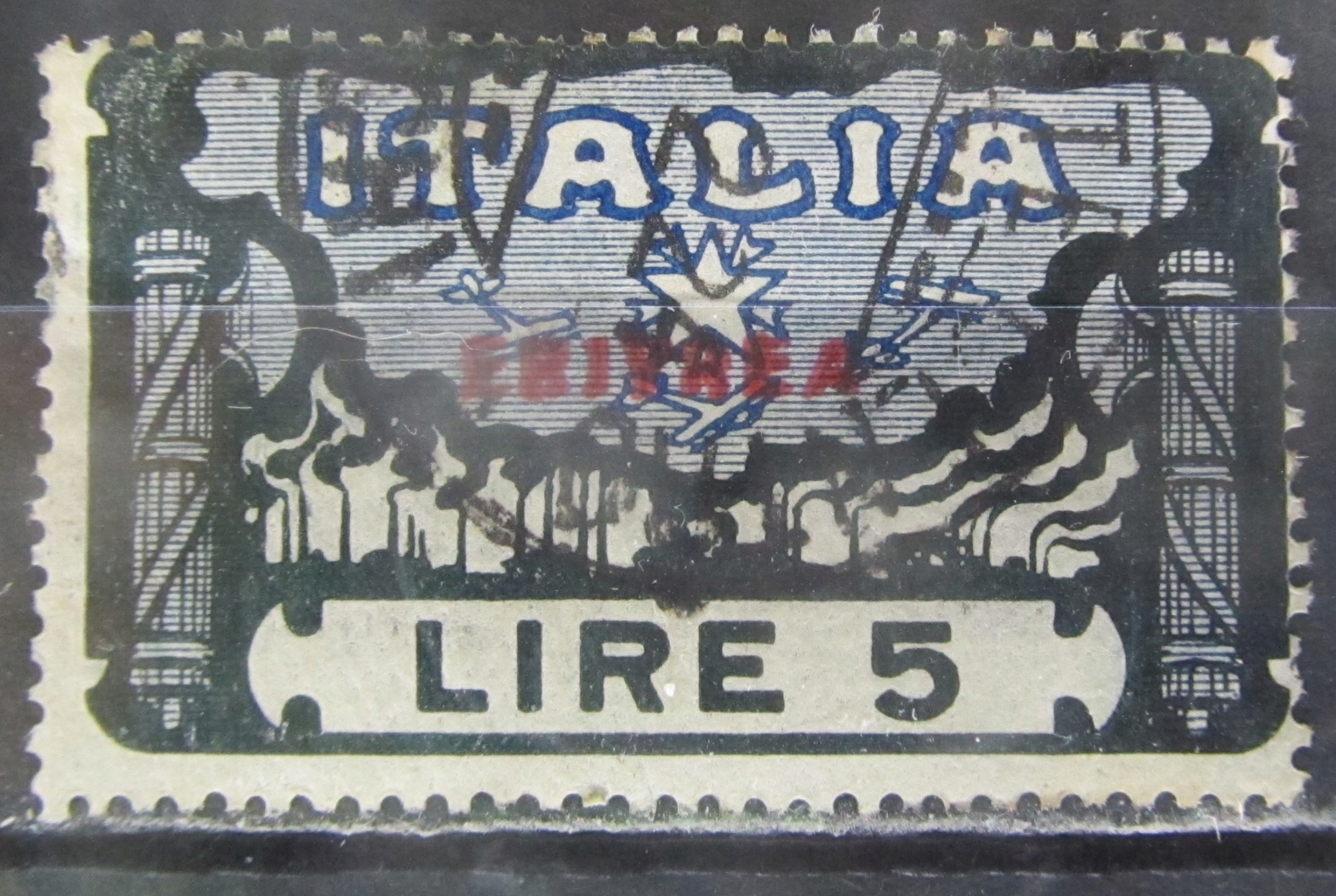 Стара марка Італії з накладкою Колонія Еритрея (5/32