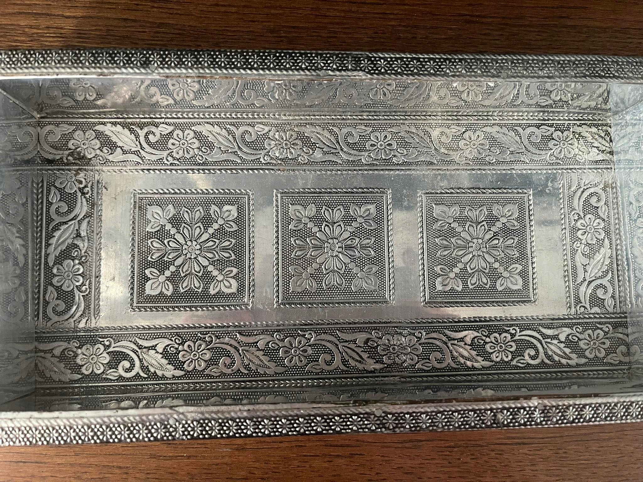 Stara metalowa grawerowana taca patera