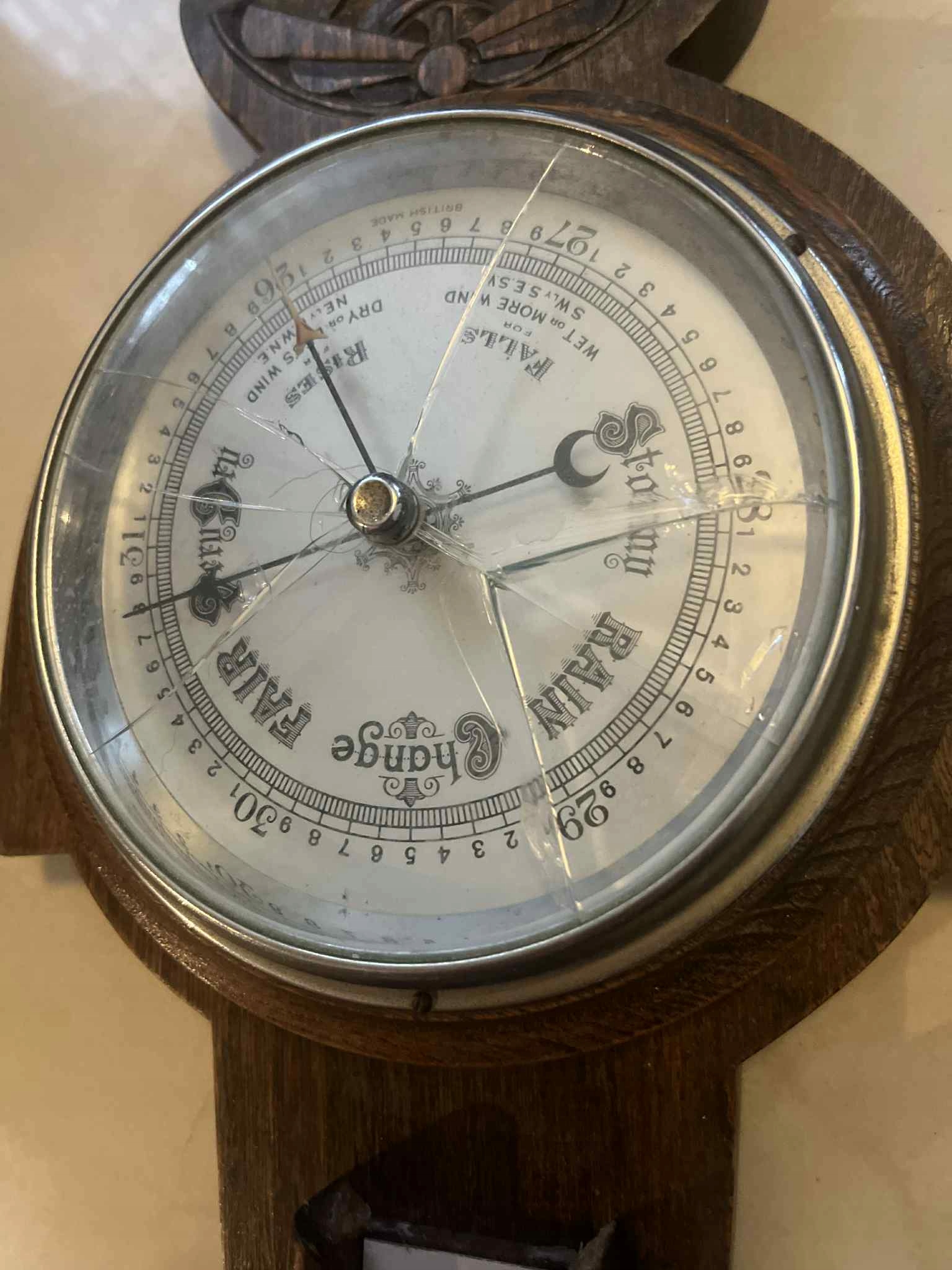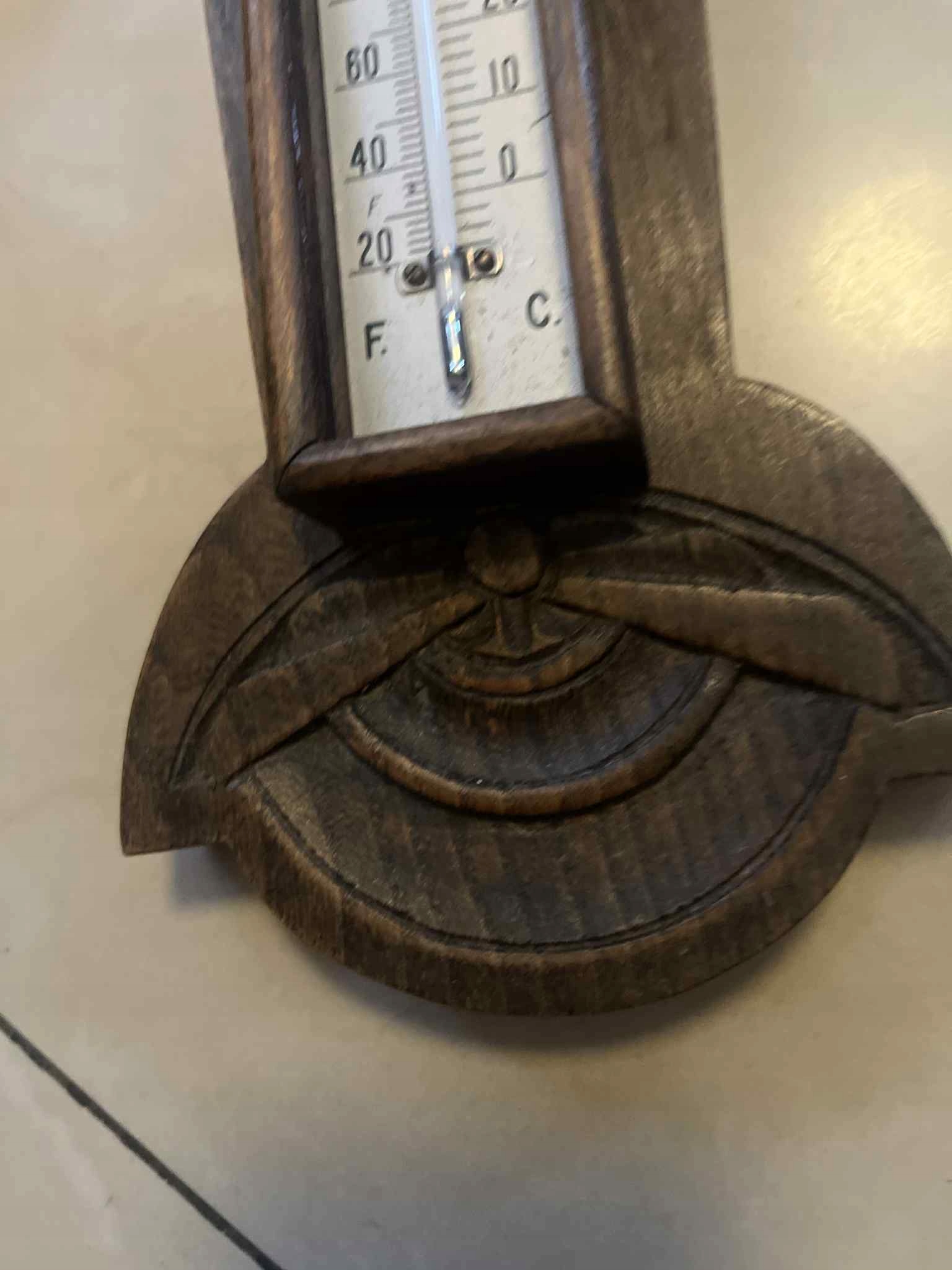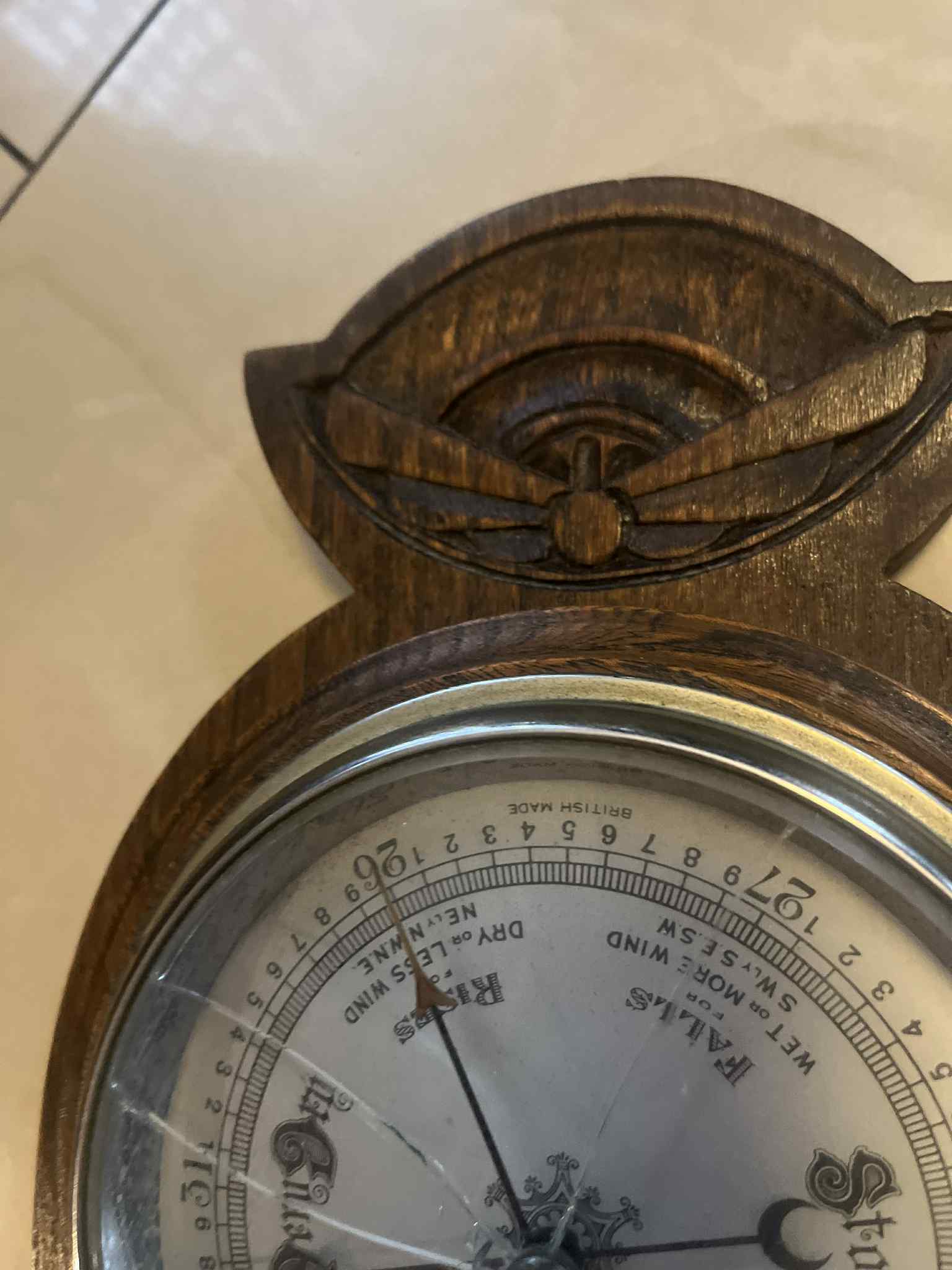 Стара метеостанція, барометр, термометр, дерево, латунь