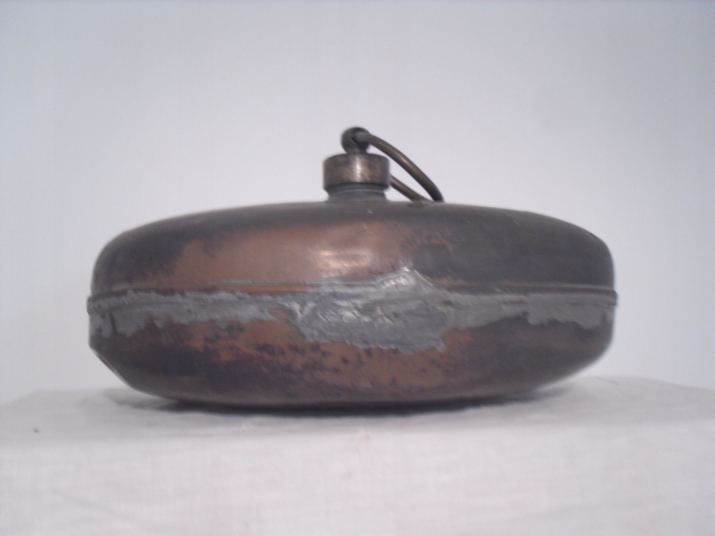 Ласкаво просимо на мій аукціон. На аукціонах я зазвичай пропоную вам речі часів Польської Народної Республіки. На цьому аукціоні пропоную стару, дуже цікаву річ - грілку або грілку. Пляшка для гарячої води, повністю виготовлена з міді, з латунною гвинтовою кришкою. Ймовірно зроблено в Німеччині, підпис внизу, видима частина напису KUPFE, що означає мідь. На грілці є кілька вм'ятин, верхня частина темна, не знаю чому. Форма еліпса. Красива прикраса середовища існування. Обігрівач очищений і не проходив ніякого обслуговування. ТІСНО. Дивіться фото.