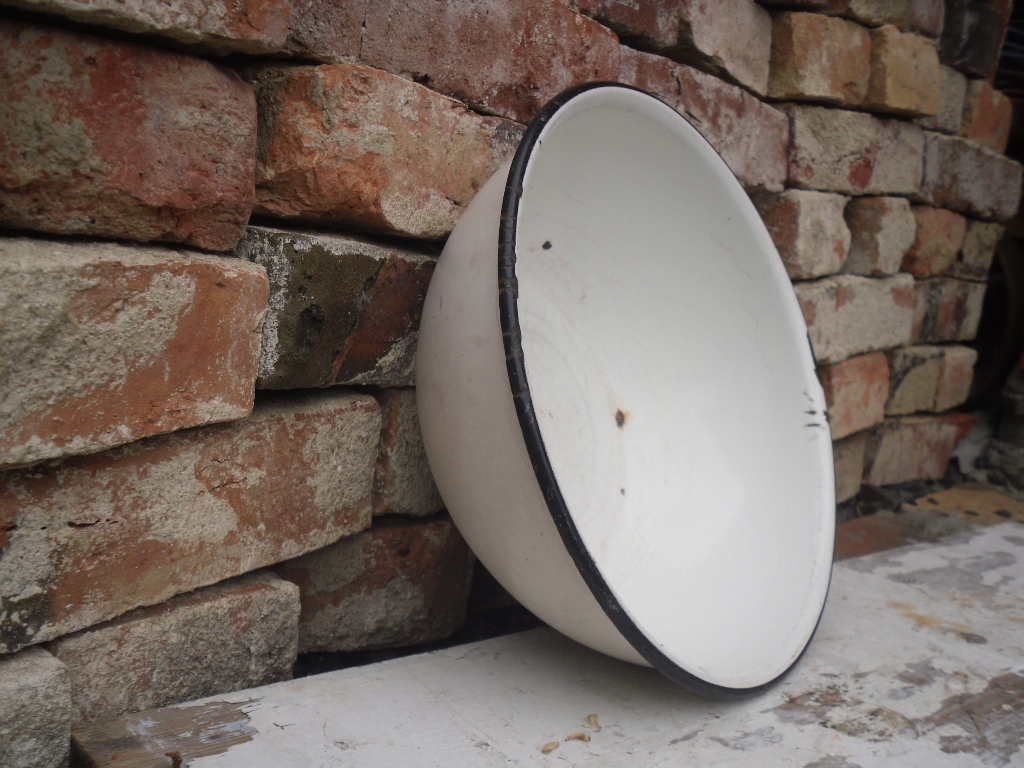 Ласкаво просимо на мій аукціон. На аукціонах я зазвичай пропоную вам речі часів Польської Народної Республіки. На даному аукціоні пропоную ОРИГІНАЛ старого емальованого блюда, фруктівниці. Блюдо біле зовні та всередині та має чорний обідок. Через вік на ньому є відколи емалі, зміни кольору, подряпини та потертості. На блюді є підпис. Чашка очищена і нічим не змащена. Гарна окраса нашого житла. Край згорнутий для зручного захоплення та перенесення. Твердий, важкий. /дивіться фотографії/.