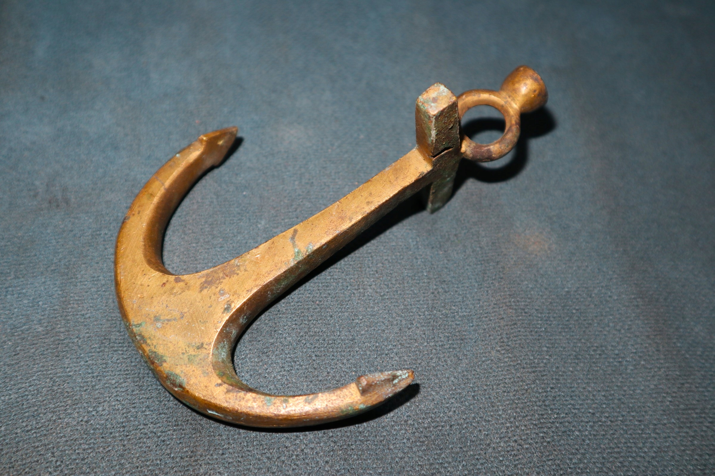 ДЕЯКИЙ ЯКІР / НЕ ЧИСТИЙ / З ЖОВТОЇ ЛАТУНІ З ВИДИМОЮ ПАТИНОЮ ВИСОТА 13 см, ШИРИНА 9,5 см, ВАГА 260 г. СТАН ЯК НА ФОТО