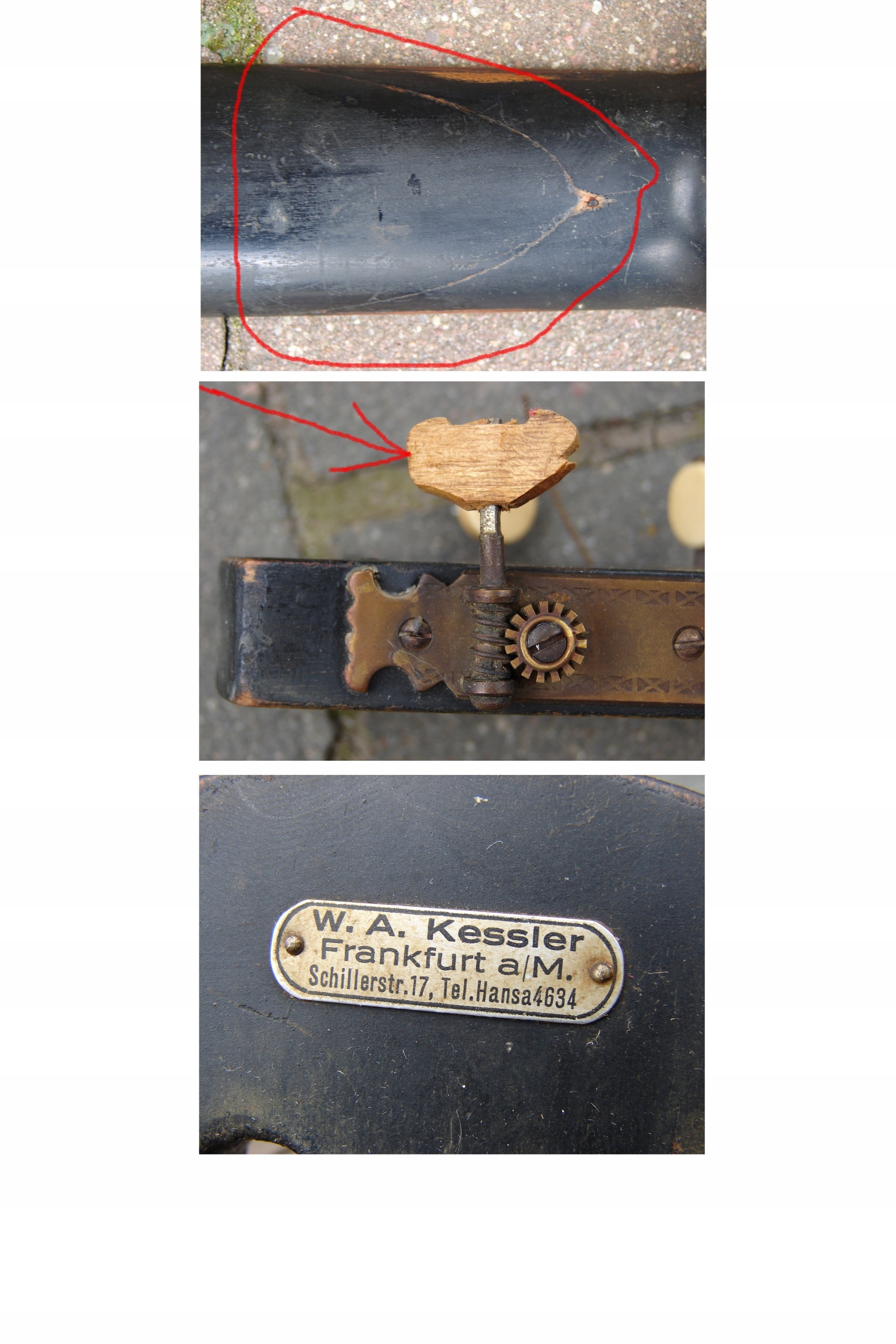 Корпус має тріщини в одній клавіші, головки пошкоджені від ручки на хвостовику, відсутня одна грибка.