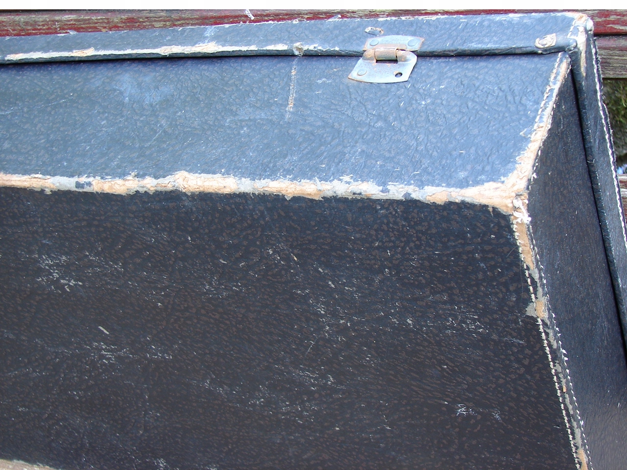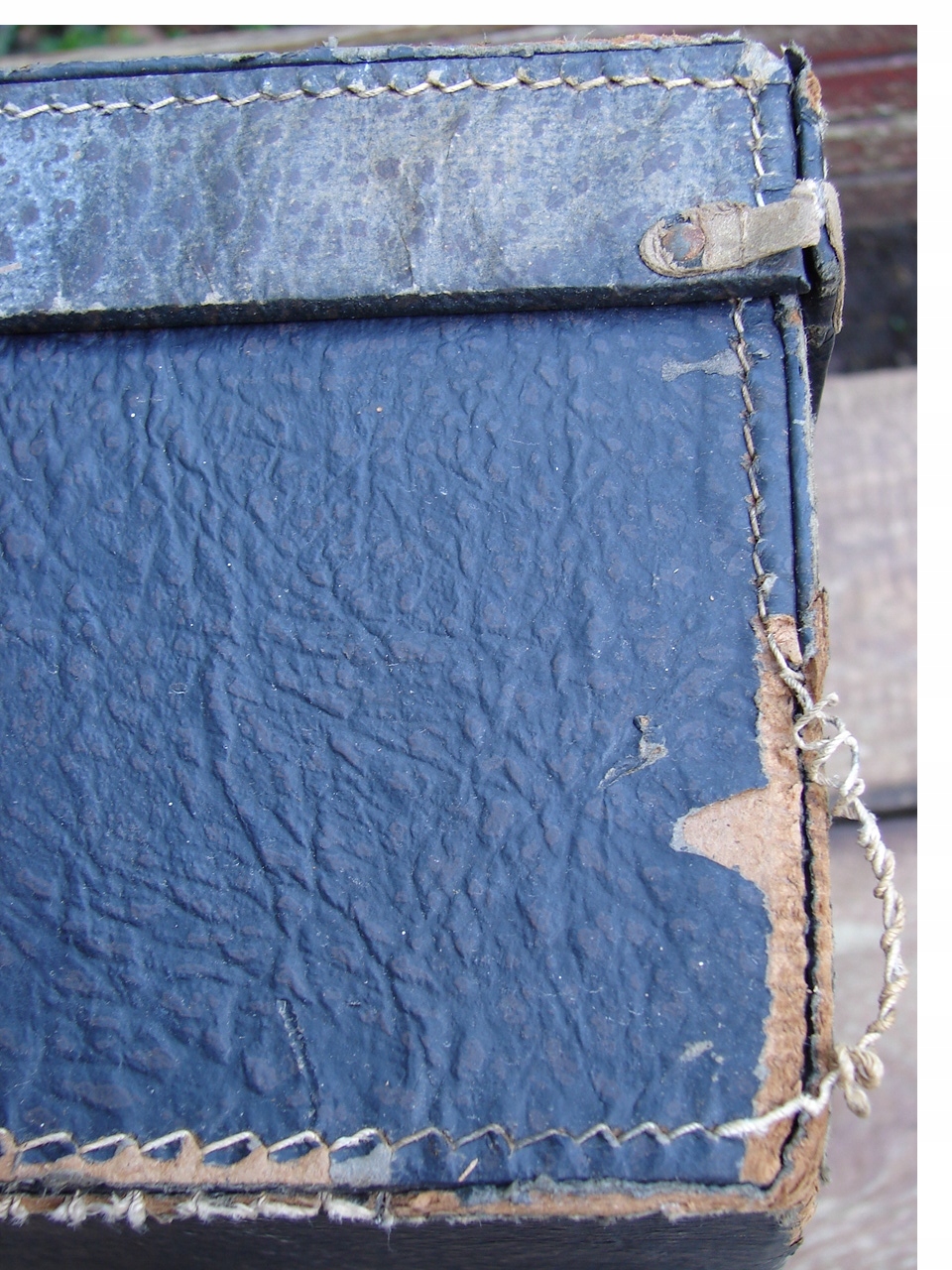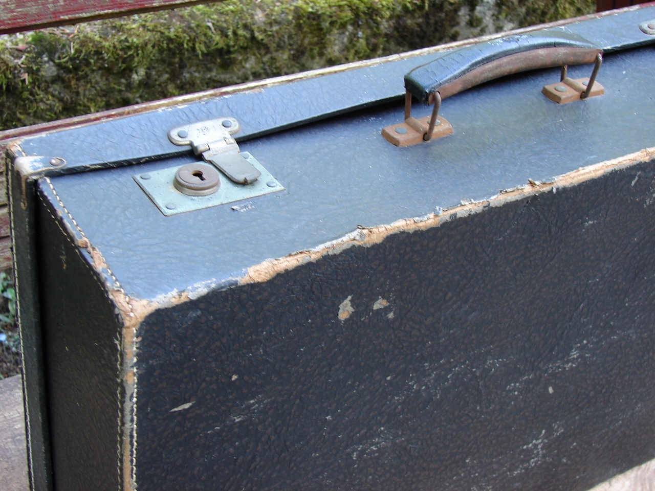 Зношений об'єкт має сліди використання та віку. Валізу має запах старого. Я закріплюю тверду.