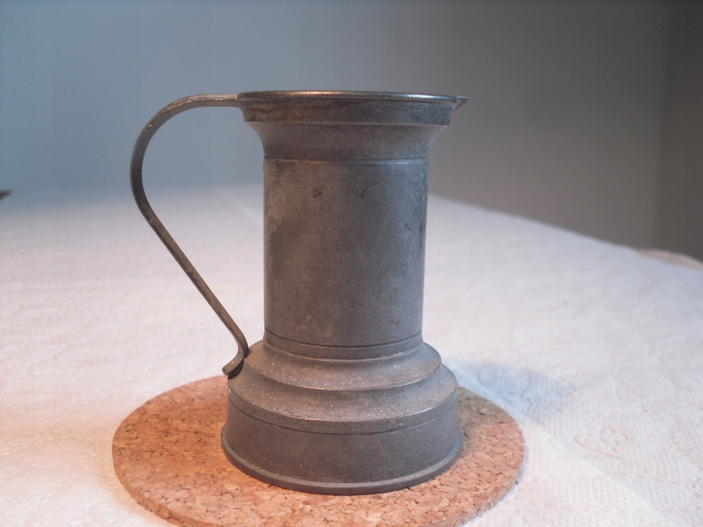 Стара олов'яна мірна посудина, глечик, чашка з носиком, мала, ПІДПИС 2