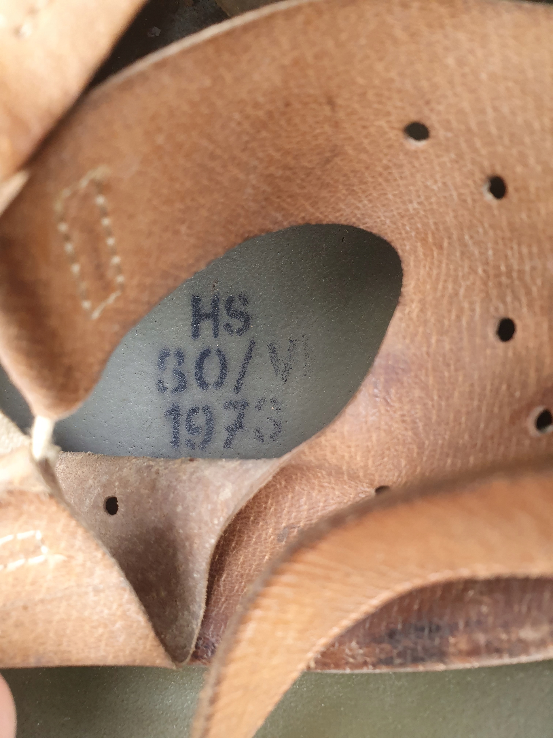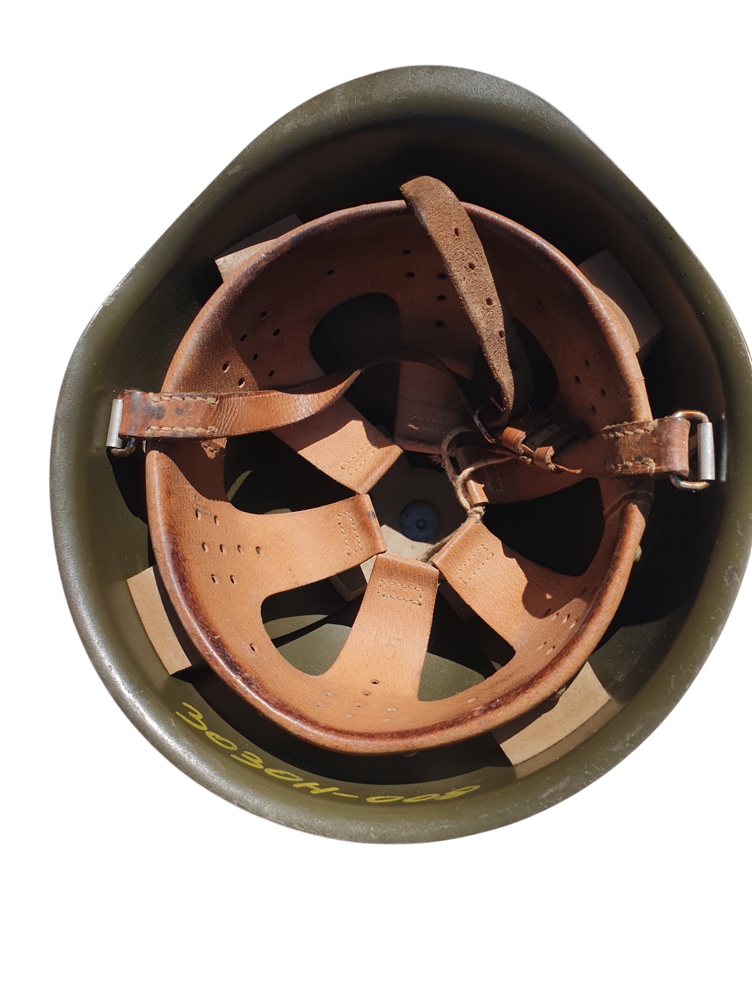 Предмет продажу автентичний Каска металева військова HS-30/V, 1973 року виробництва Польща. Ця модель була стандартним спорядженням для солдатів Польської Народної Армії в 1970-х роках.