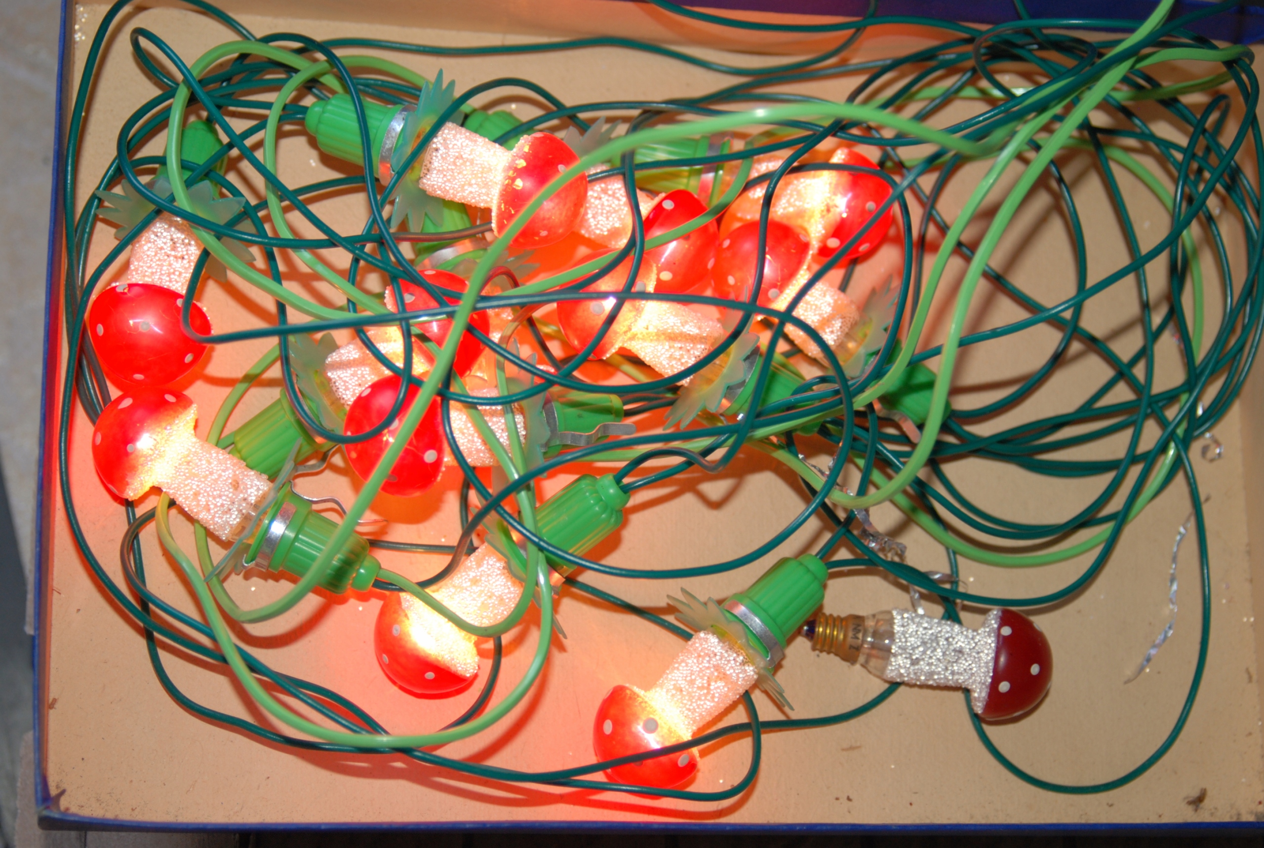 Старі ремесла Різдвяні прикраси лампи Ялинкові вогні поганки гриби 12 штук від чехословацької фірми ESĆ колекційний антикваріат Унікальна пам'ятка Польської Народної Республіки