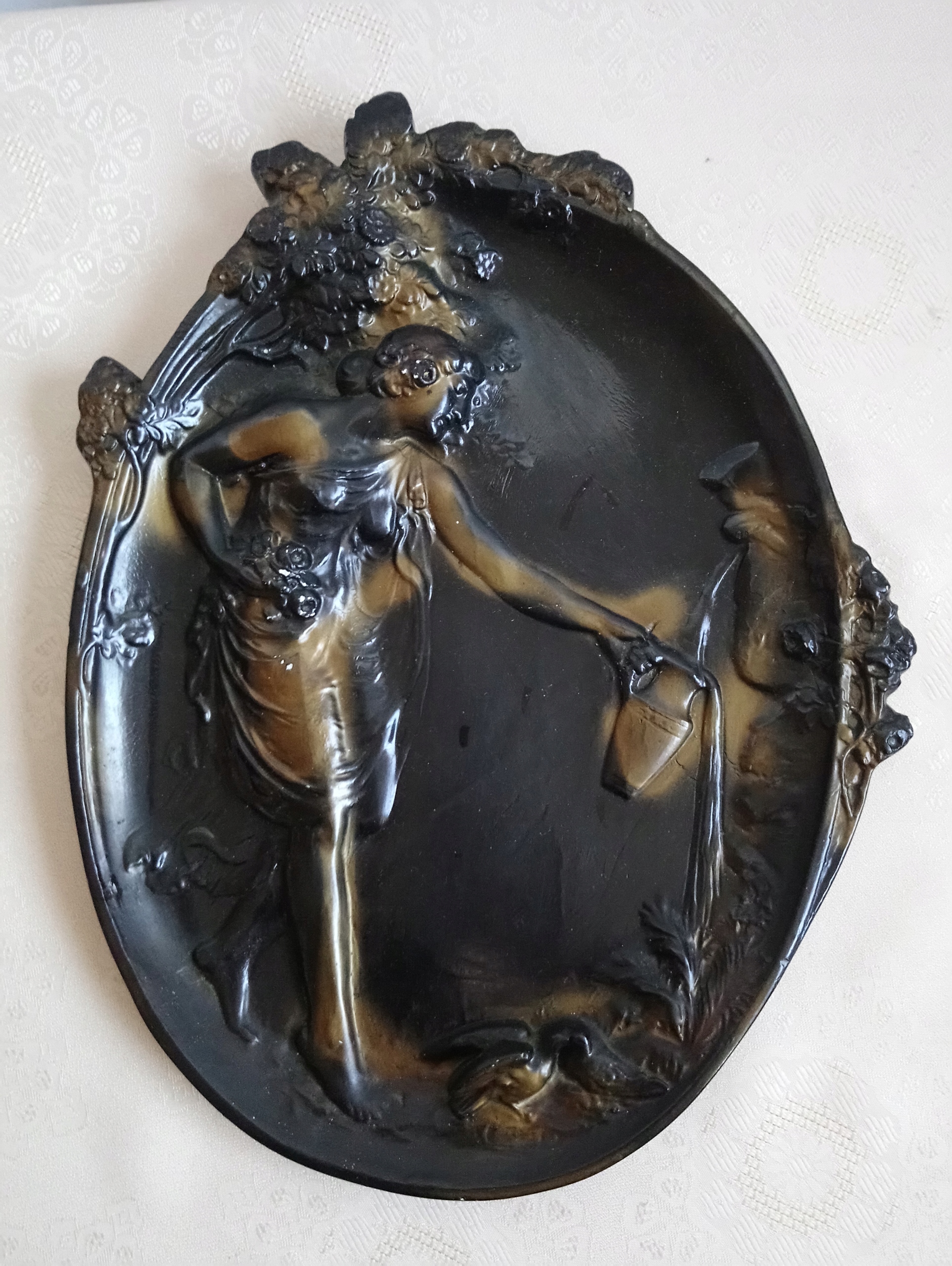 Stara płaskorzeźba gispowa - KOBIETA z DZBANEM WODY - z czasów PRL
