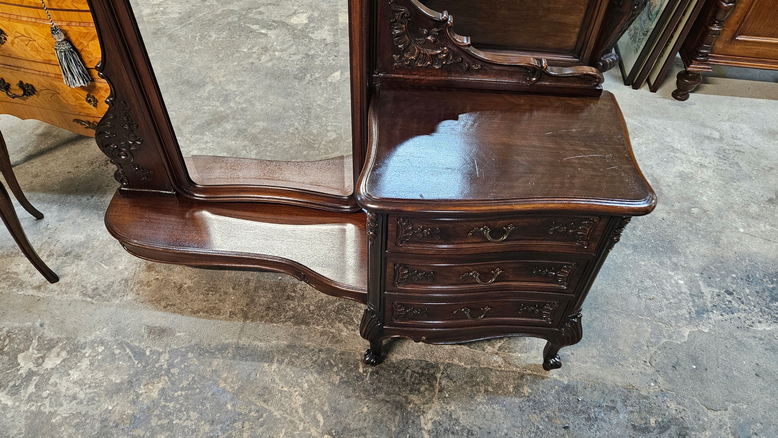 Старий красивий різьблений туалетний столик дзеркало Ludwik - вражає