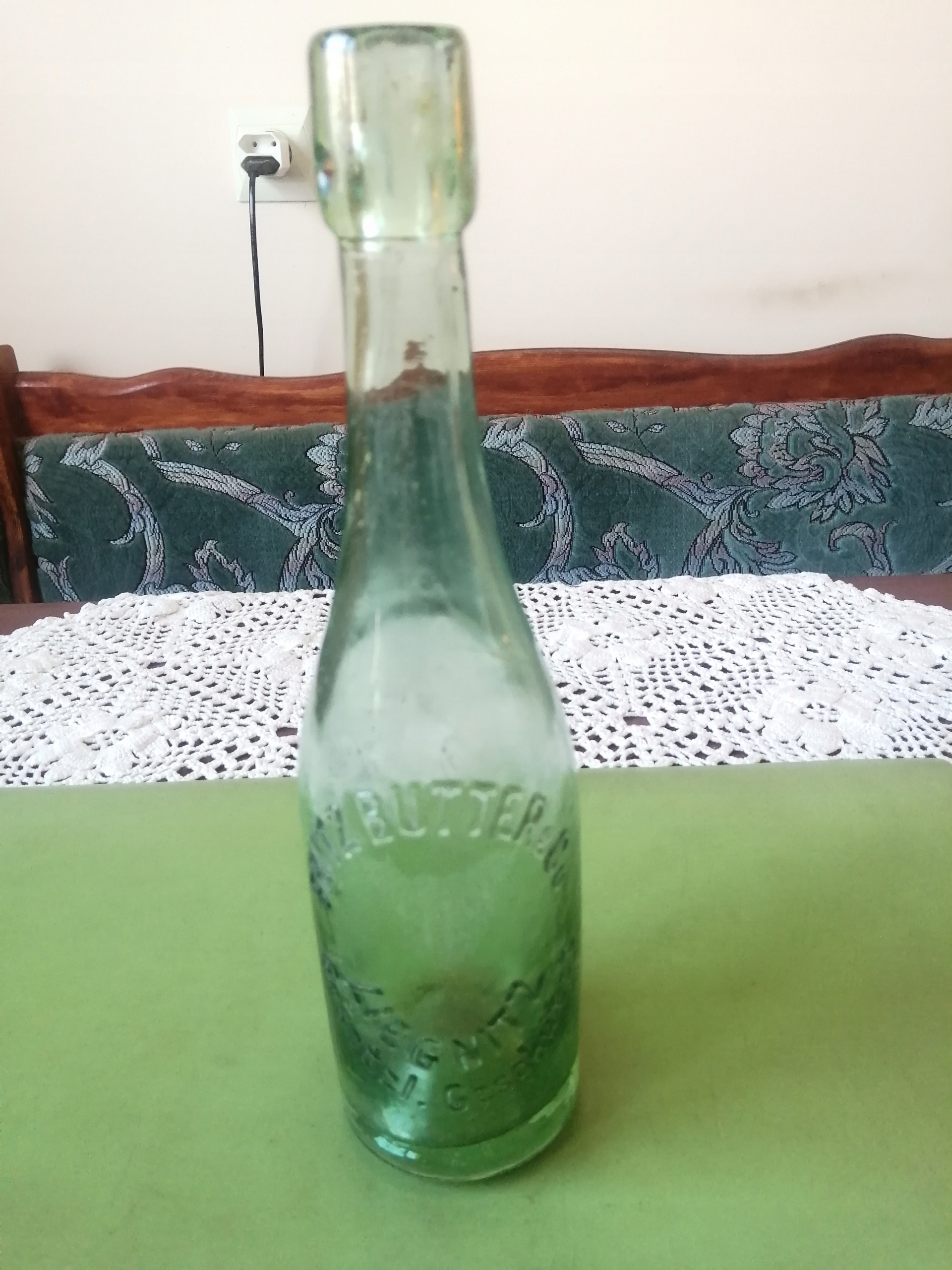 Я рекомендую стару пляшку з Liegnitz (Legnica). Зареєструйтесь: Fritz Butter & Co. Liegnitz gesetzl.geschutz. Дуже приємний стан