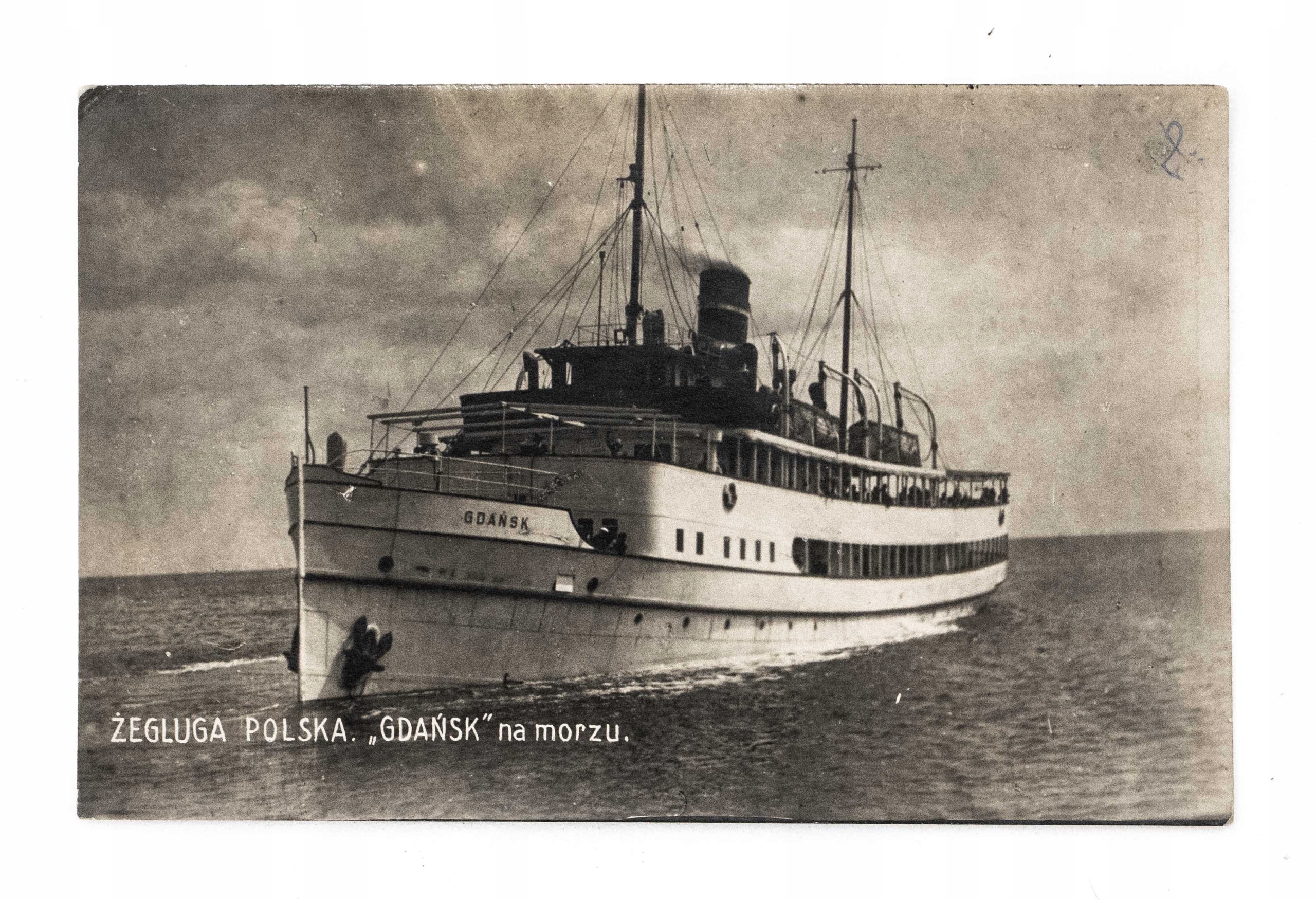 STARA POCZTÓWKA - ŻEGLUGA POLSKA GDAŃSK NA MORZU, STATEK II RP