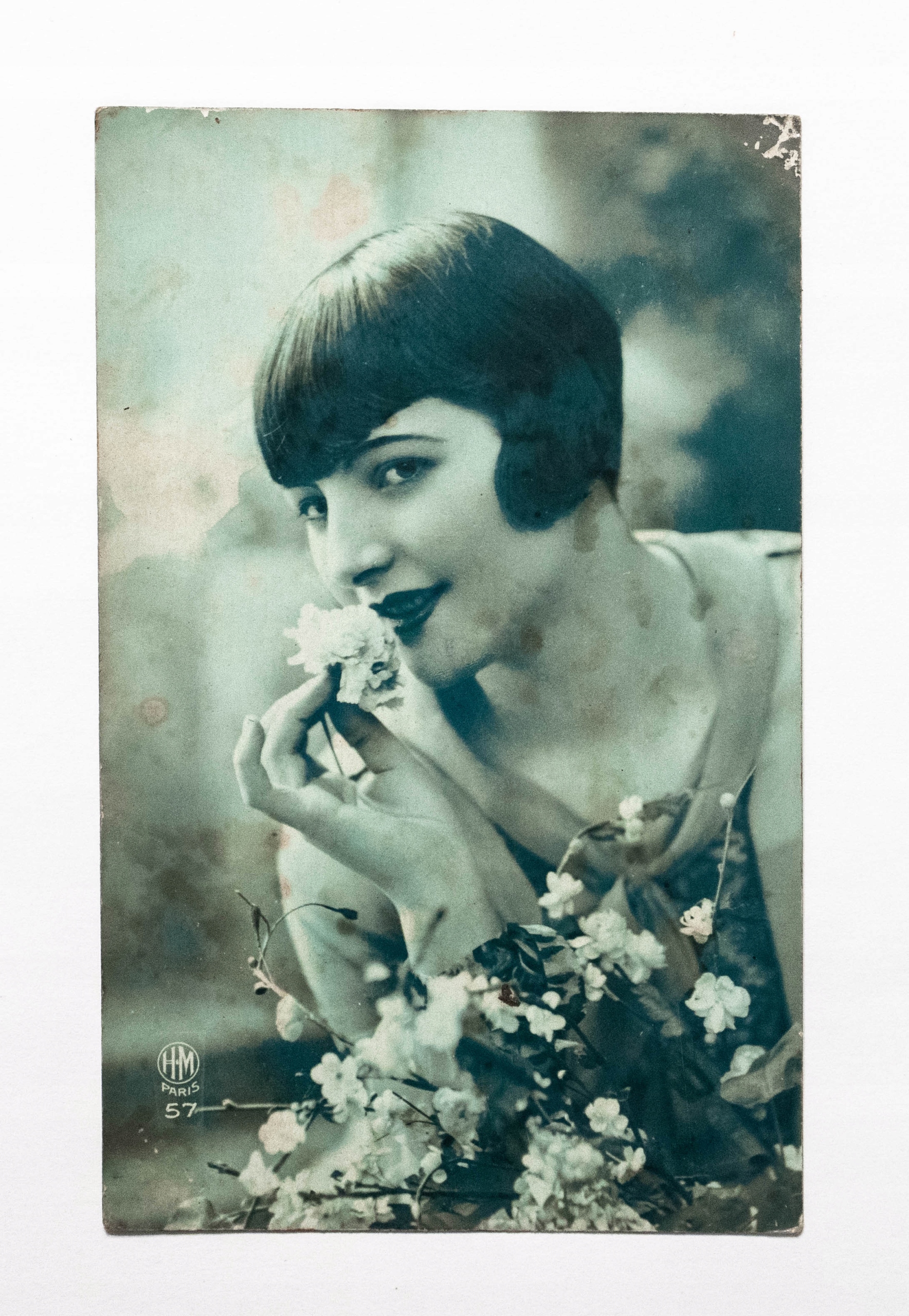 STARA POCZTÓWKA - KOBIETA Z KWIATAMI, PARYŻ