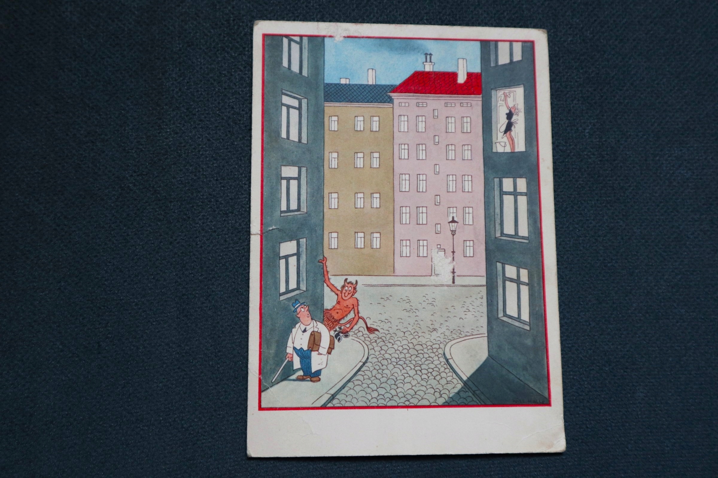 STARA POCZTÓWKA DIABEŁEK Z LORNETKĄ