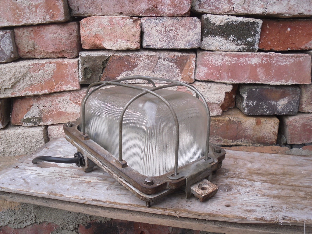 Ласкаво просимо на мій аукціон. На аукціонах я зазвичай пропоную вам речі часів Польської Народної Республіки. На цьому аукціоні я пропоную ОРИГІНАЛЬНУ стару майстерню або лампу, яку часто знаходять у підвалах та на робочих місцях. Лампа сірого кольору, а точніше є залишки кольору і білого в місці установки лампочки. Керамічний патрон лампи несправний, але він цілий і все ще має деяку проводку. Всі кріплення цілі, всі чавунні елементи і сітчасте покриття також неушкоджені. Скляний абажур цілий, без тріщин та пошкоджень, оригінальна пломба нажаль потріскана через старість, але ПОВНІСТЮ /дивіться фото/. Ущільнювач змащений косметичним вазеліном (використовую для фільтрів в акваріумах). Лампа була очищена і жодним чином не обслуговувалася. Гвинти очищені та змащені мастилом. Дивіться фотографії.