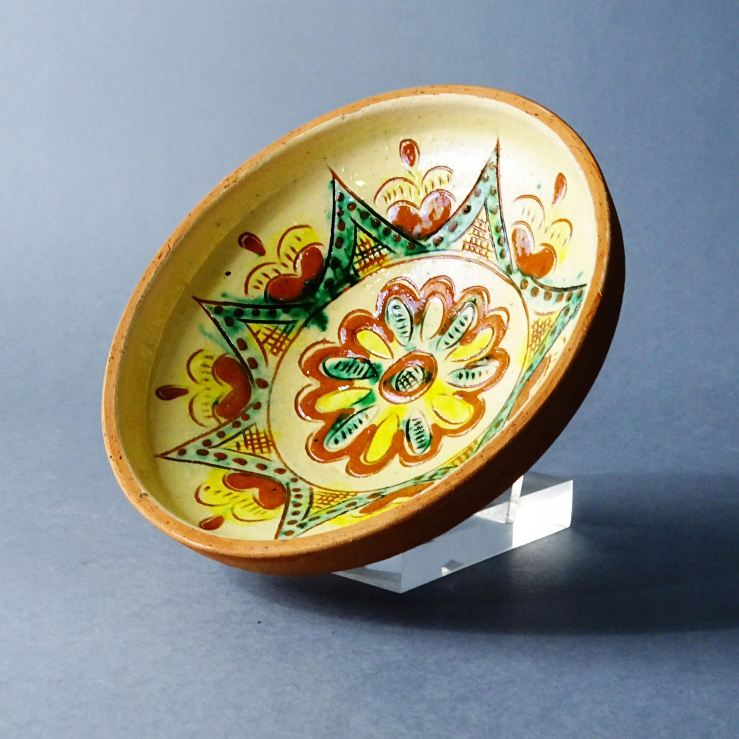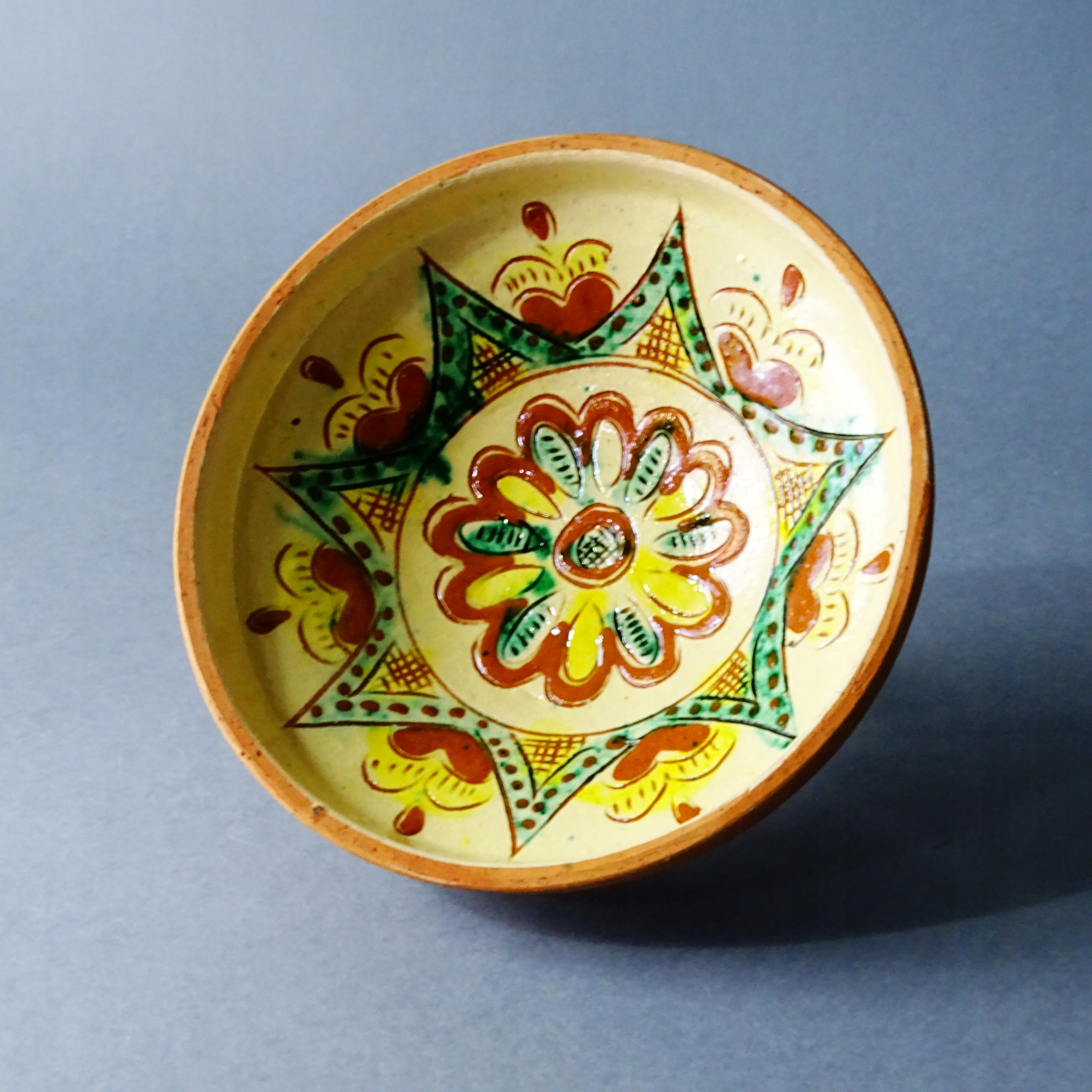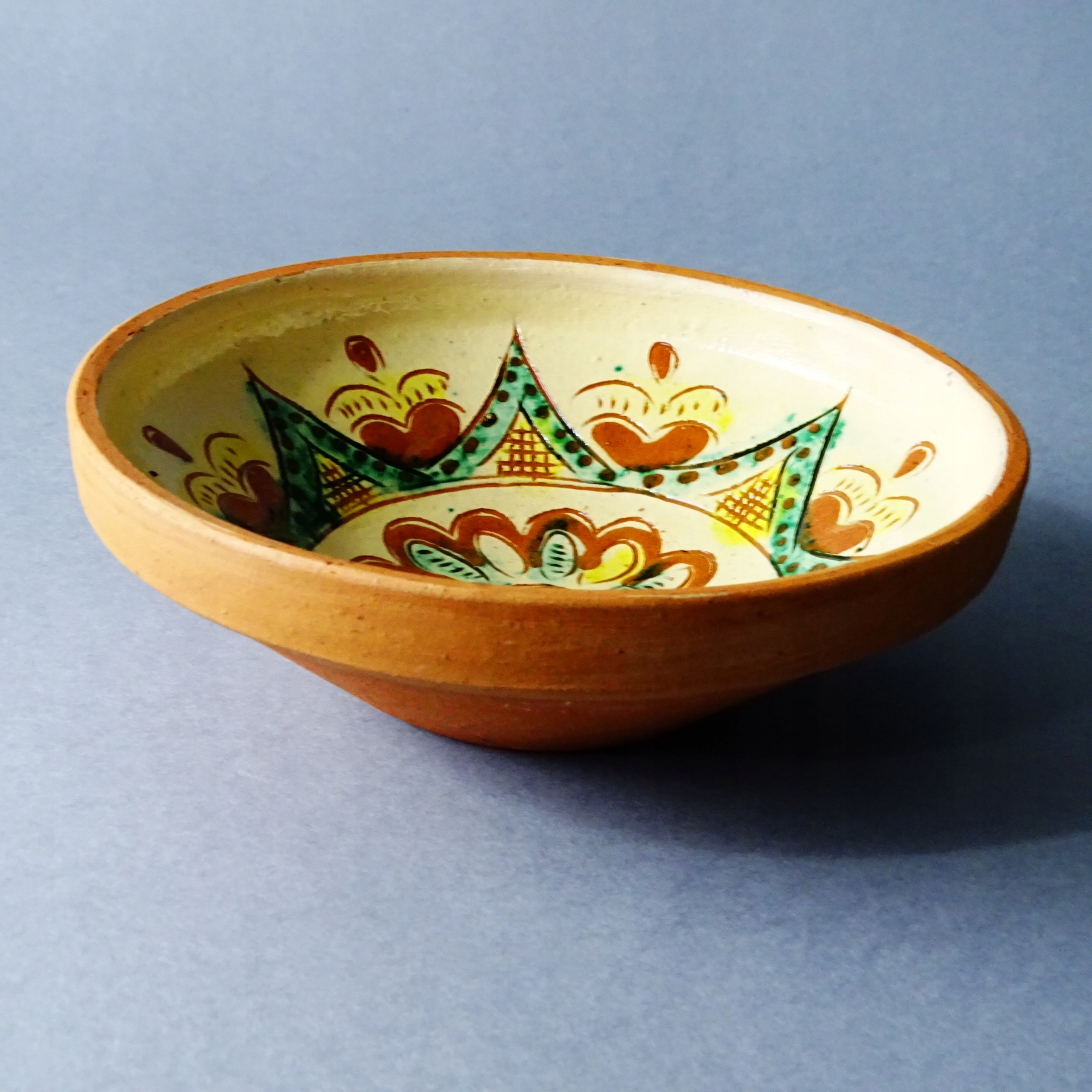STARA RĘCZNIE WYKONANA MISECZKA PATERKA GLINIANA STYL LUDOWY FOLK