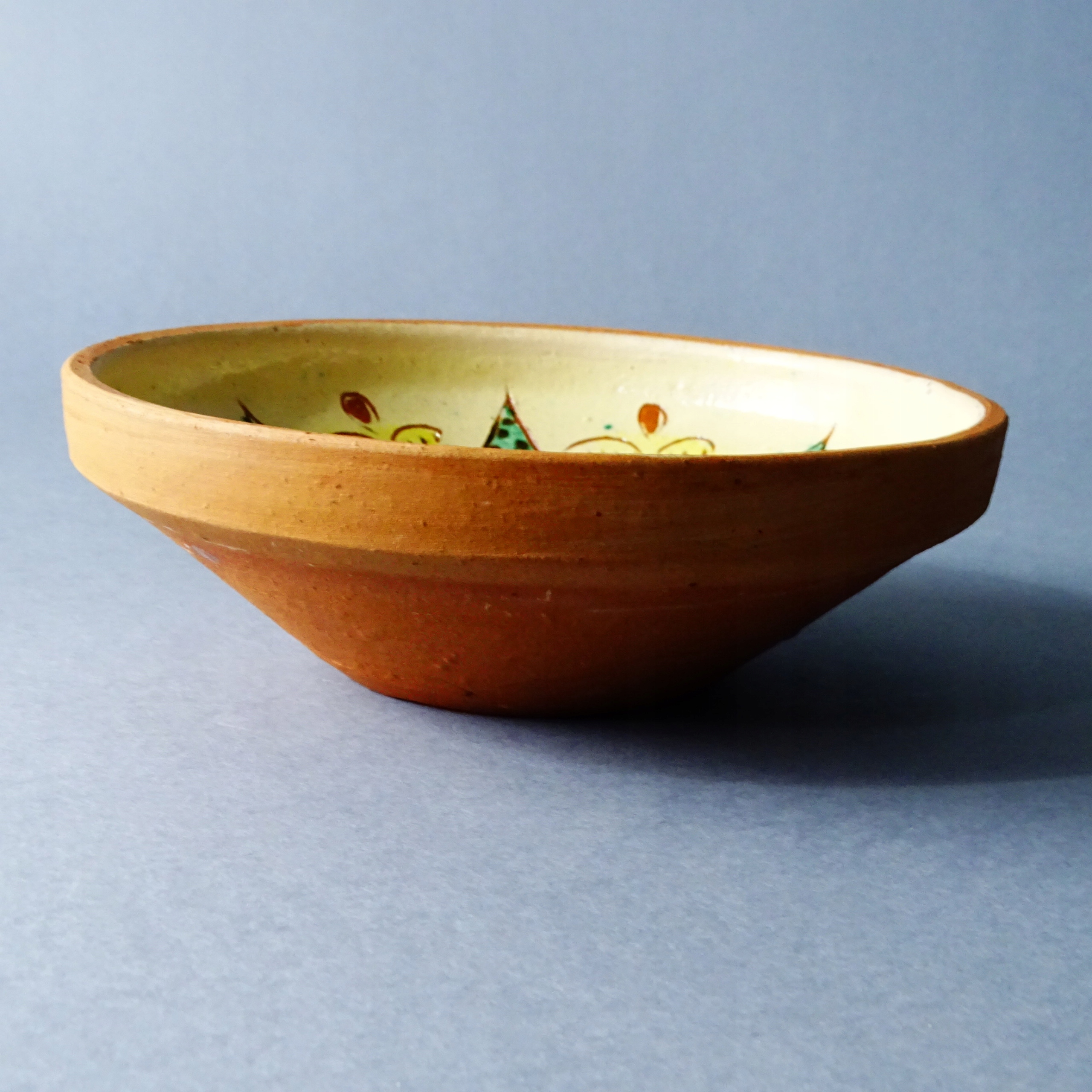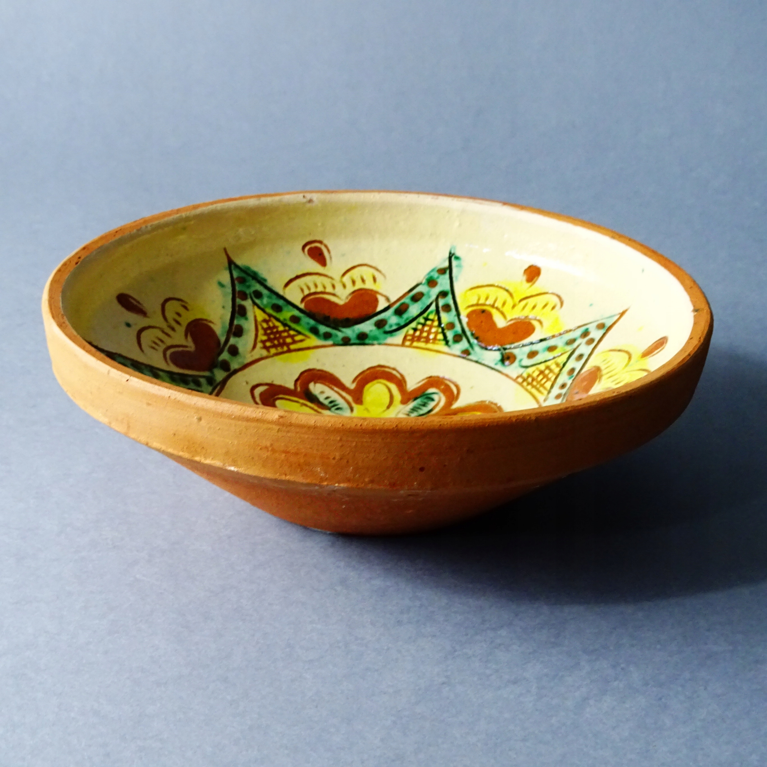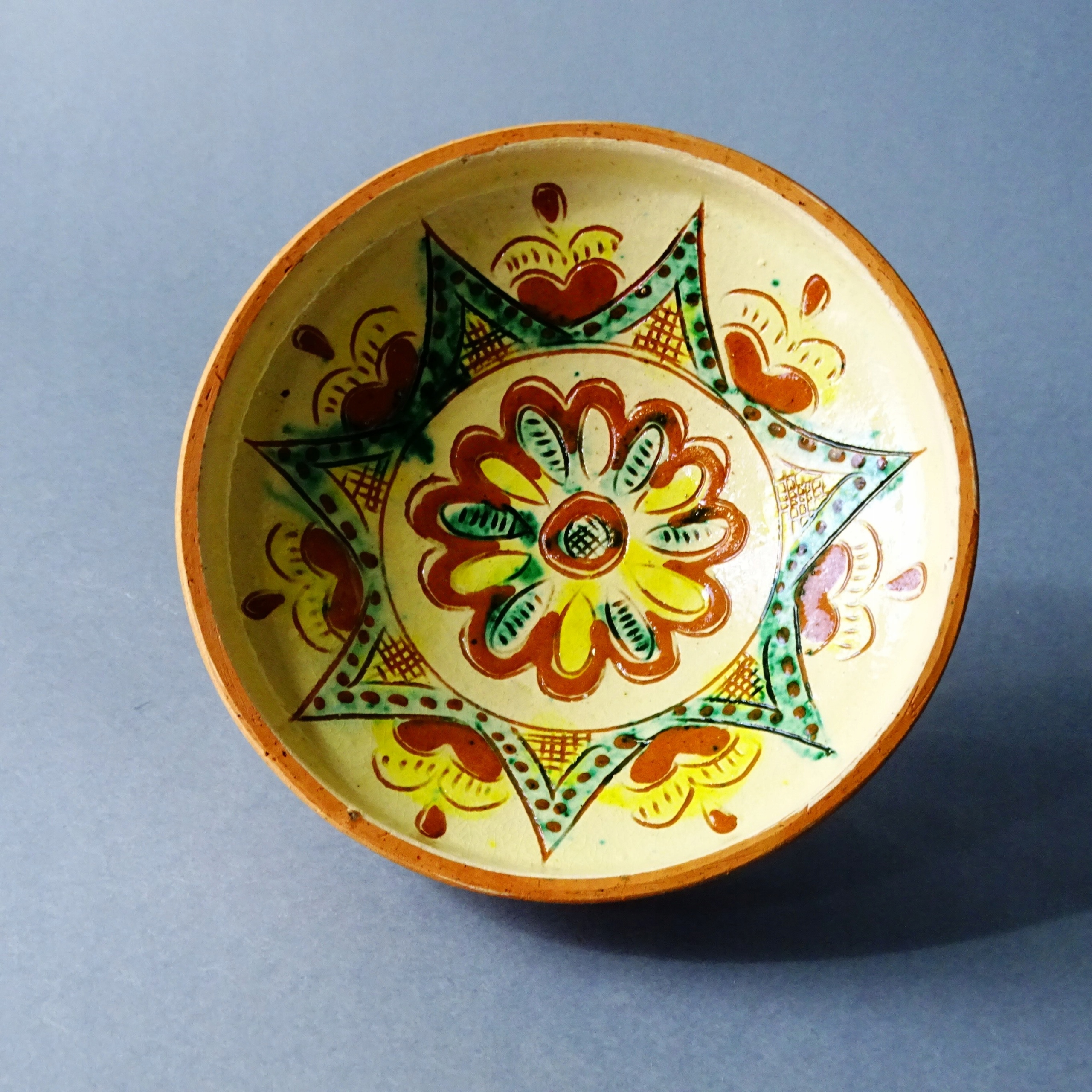 STARA RĘCZNIE WYKONANA MISECZKA PATERKA GLINIANA STYL LUDOWY FOLK