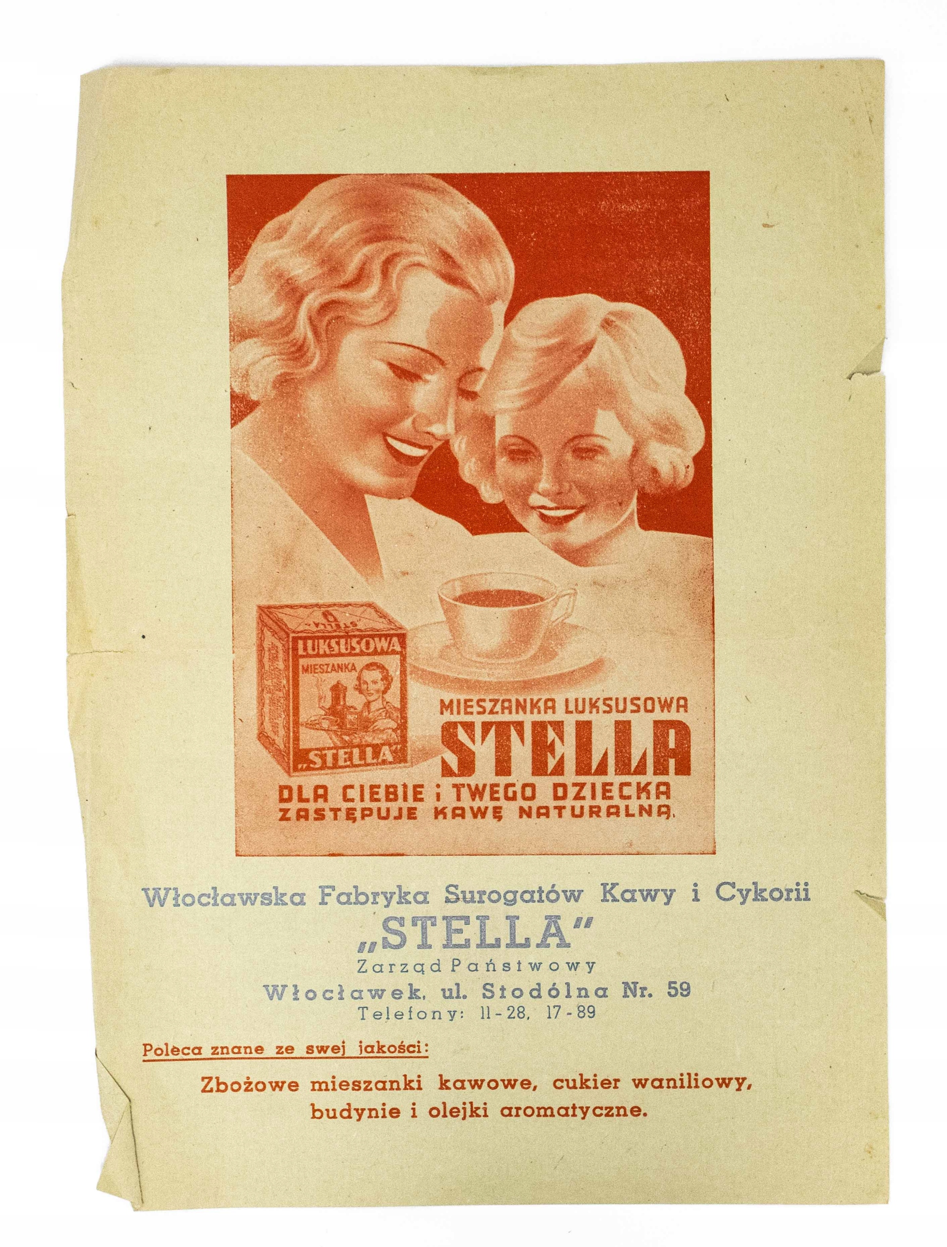 СТАРА РЕКЛАМА - STELLA, ФАБРИКА З ВИРОБНИЦТВА КАВИ ТА ЦИКОРІЮ, WŁOCŁAWEK