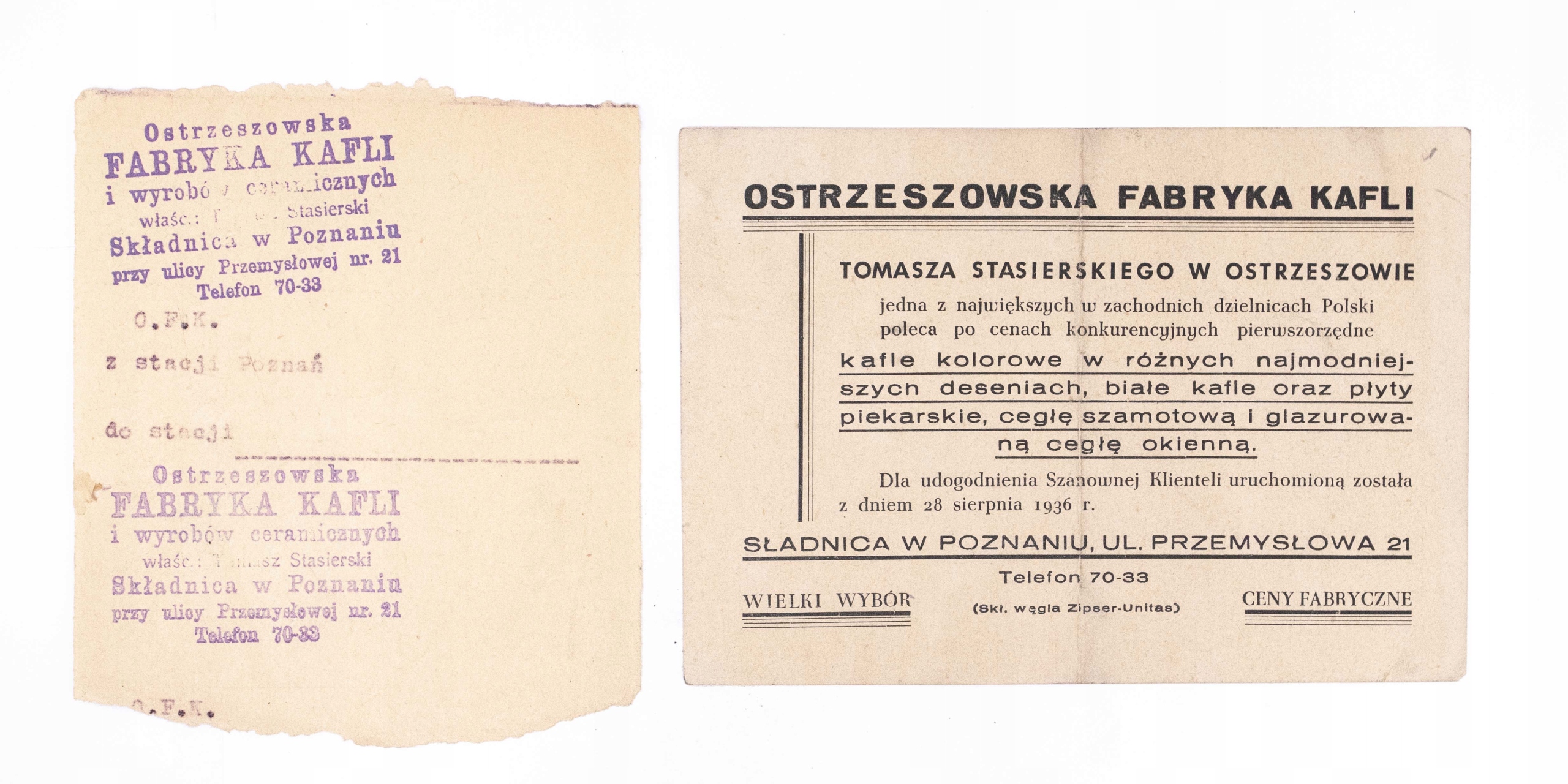Стара реклама - завод плитки Томаш Стасерський, Острізцов / Познń 1936