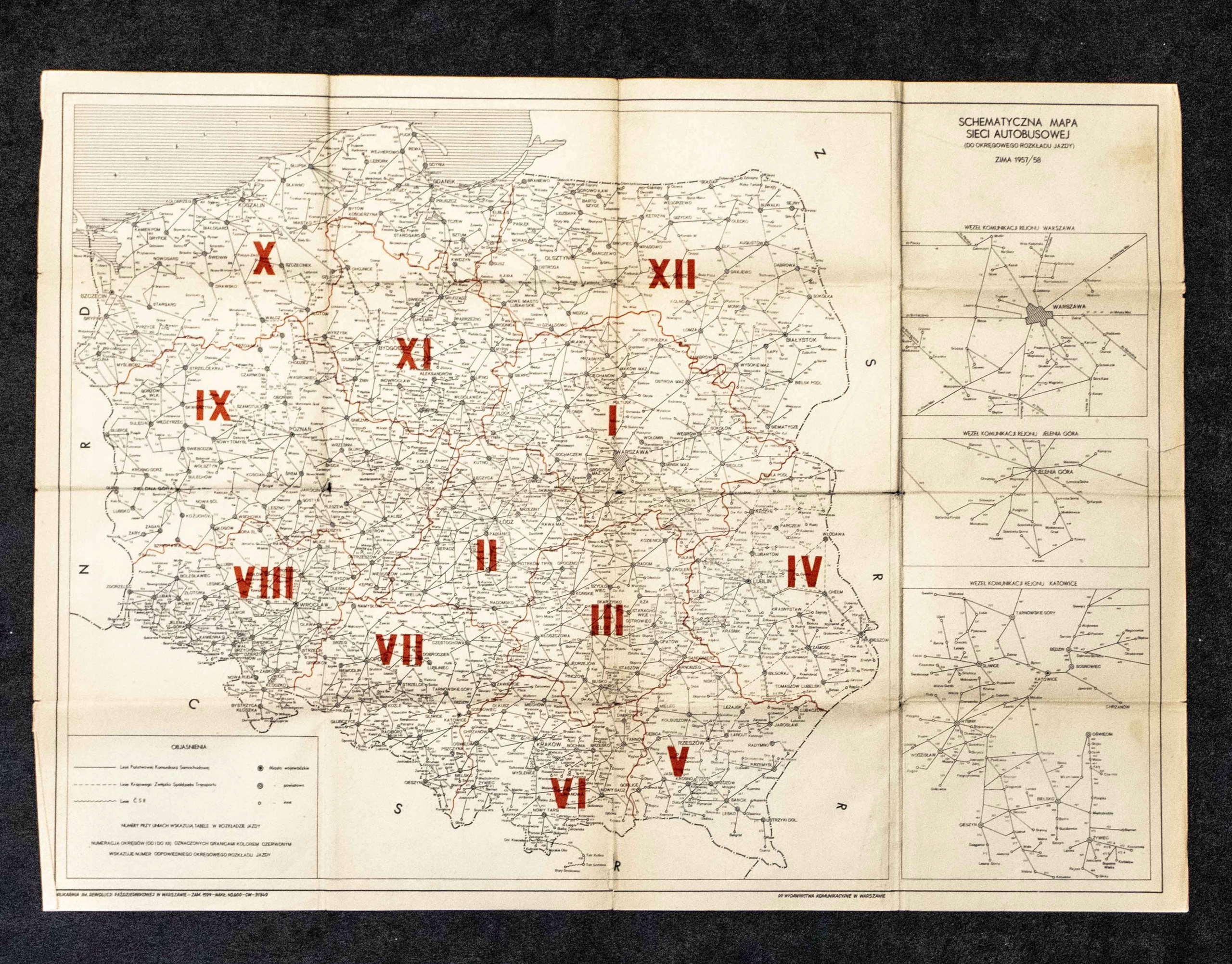 СТАРА СХЕМАТИЧНА КАРТА АВТОБУСНОЇ МЕРЕЖІ ПОЛЬЩІ 1957 / 1958 Р.
