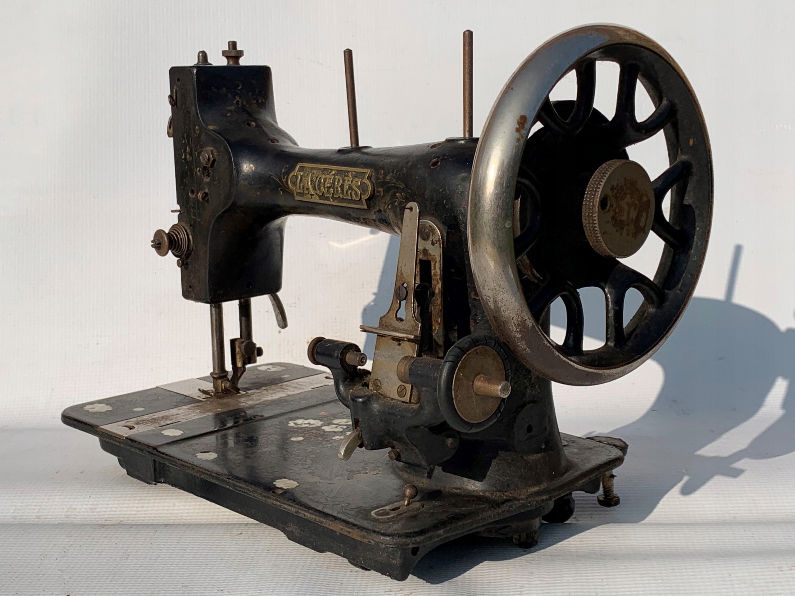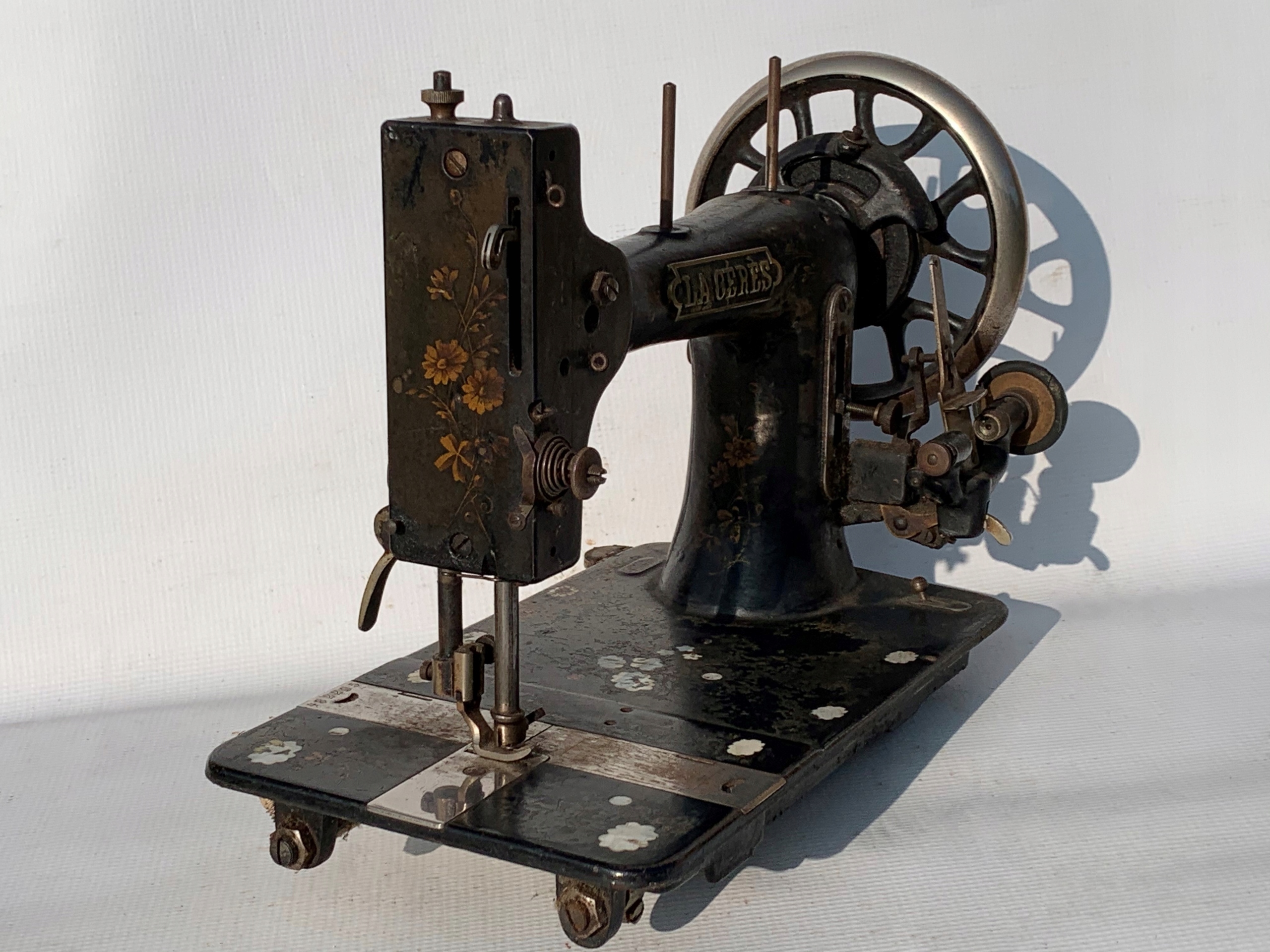 Предметом продажу є стара швейна машина-човник фірми LA CERES, BEAUVAIS MECANICIEN TOULON. Дуже гарний візерунок. Легкий доступ до механізму після відкручування одного гвинта ззаду. Машина не перевірялася на працездатність. Підставка - як на фото. Якщо ви шукаєте щось оригінальне, цей аукціон саме для вас.