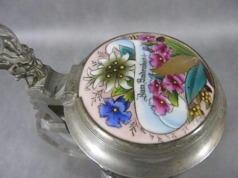 Жерстяна кришка з підписом «Fein zinn» з порцеляновою тарілкою та написом «J.C. Limberg» по периметру