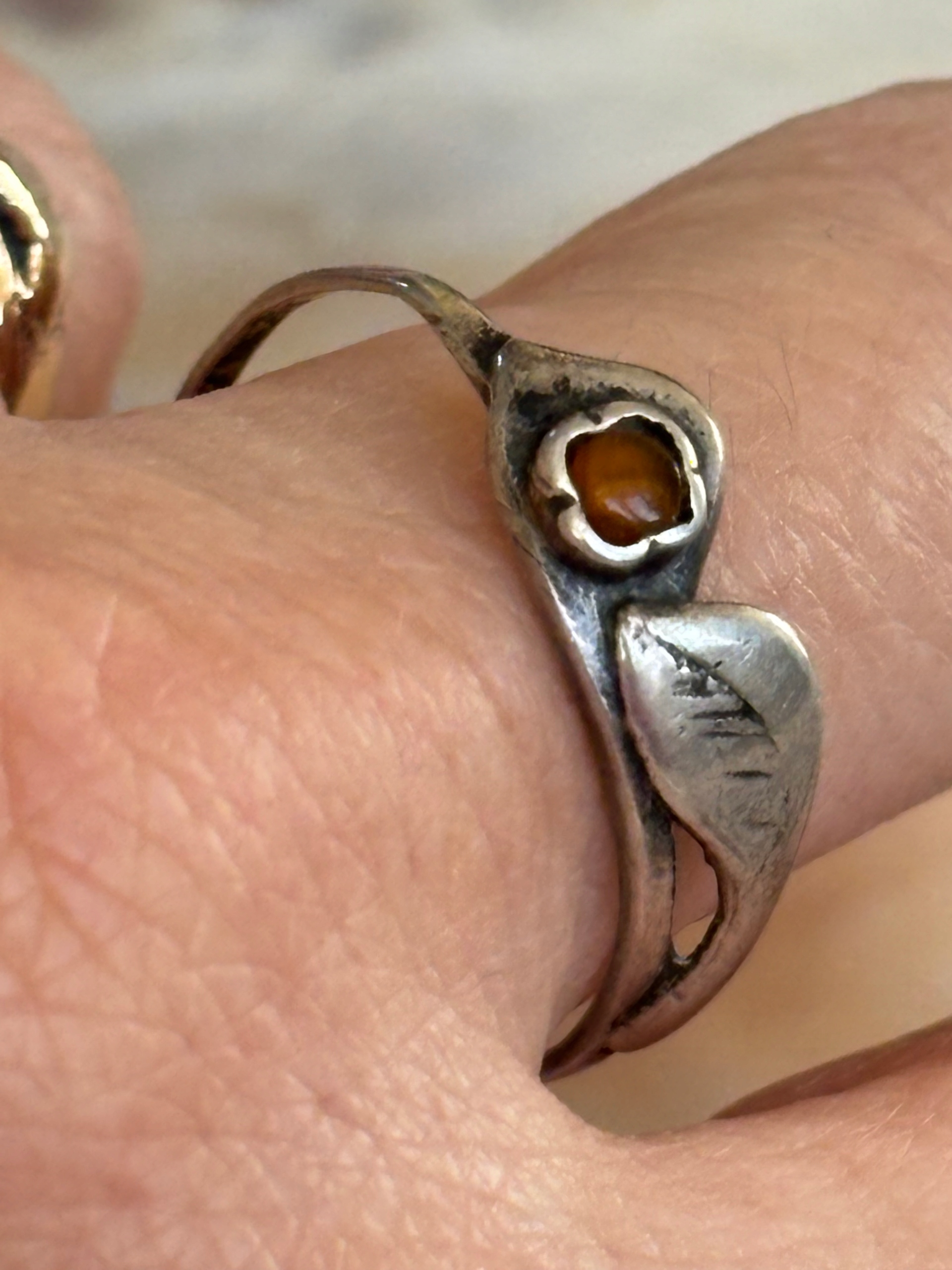 Стара срібна каблучка, листя, камінь, бурштин, Польська Народна Республіка