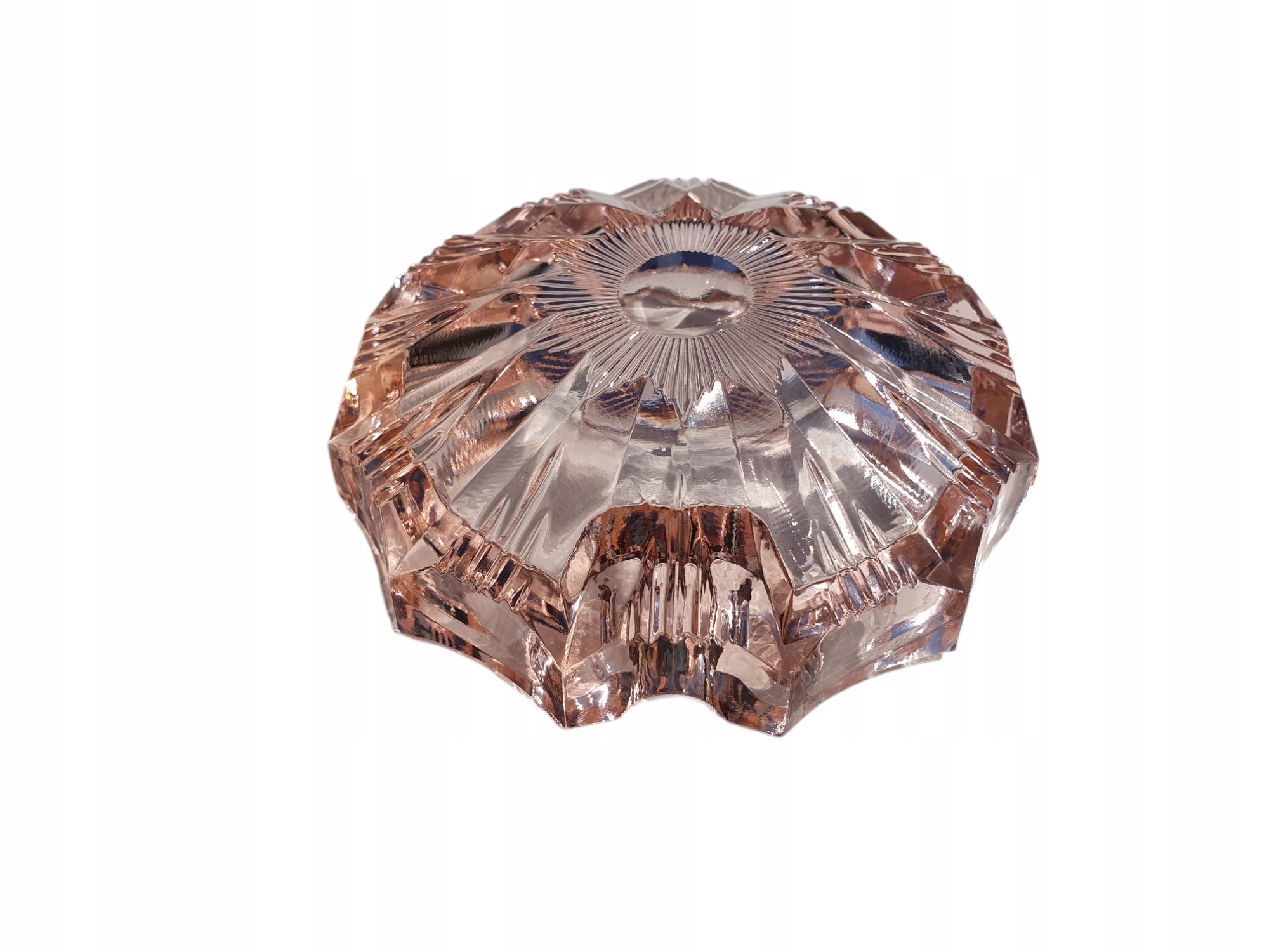 стара кришталева попільниця з 1950 -х/60. - Рожевий розалінський скло, шліфована рідка пам'ятник Rizalit Antique Collector PRL