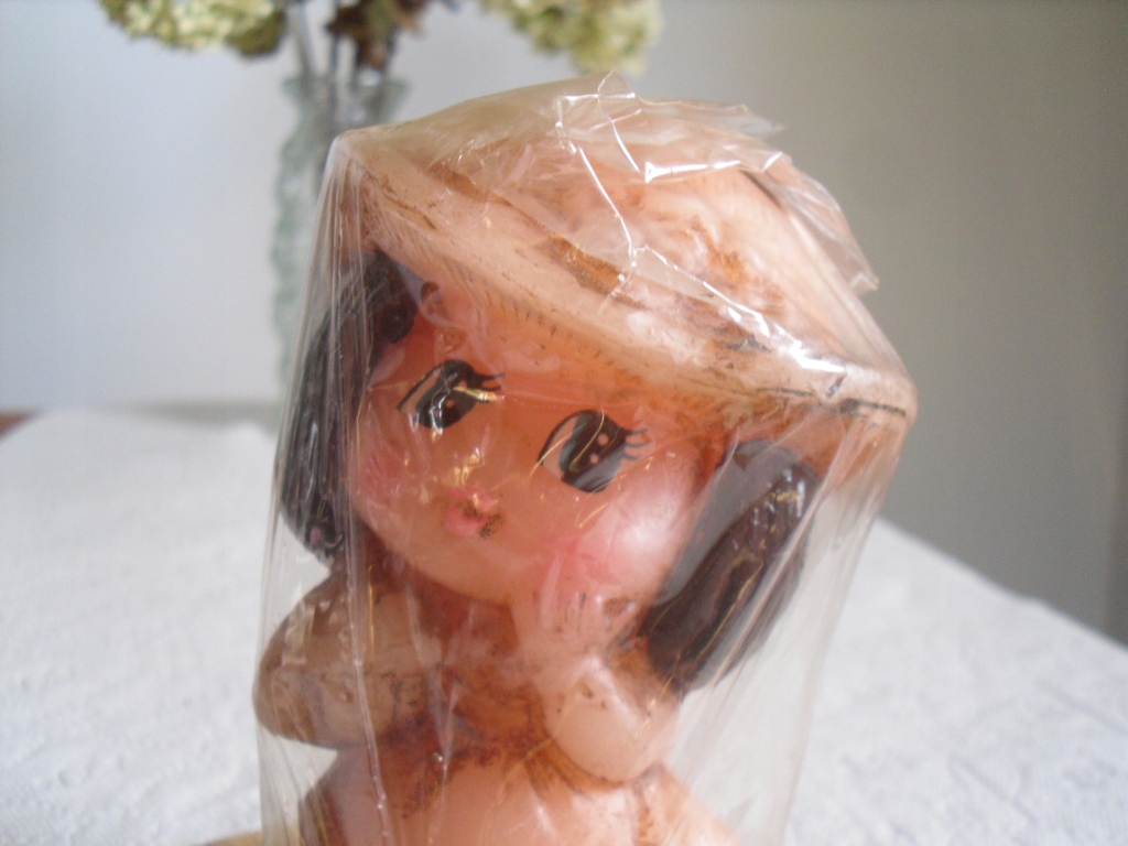 Стара свічка, свічка дівчини в капелюшку, РІЗДВЯНА свічка, загорнута у фольгу, PRL