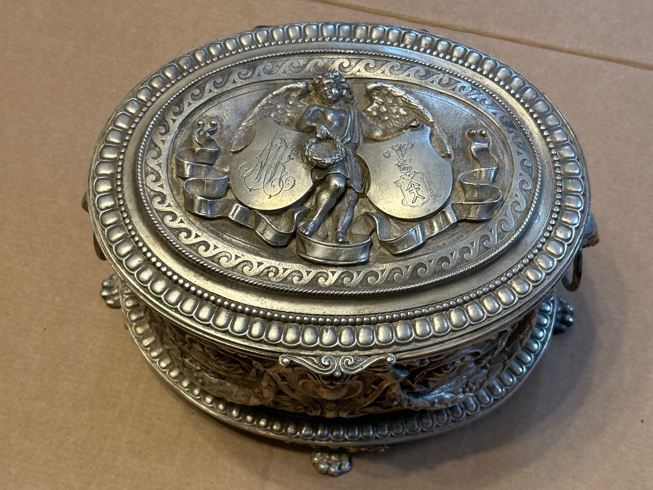 Стара жерстяна коробка. Історизм 19 ст. Стиль неоренесанс. Герб КОНЦЄША