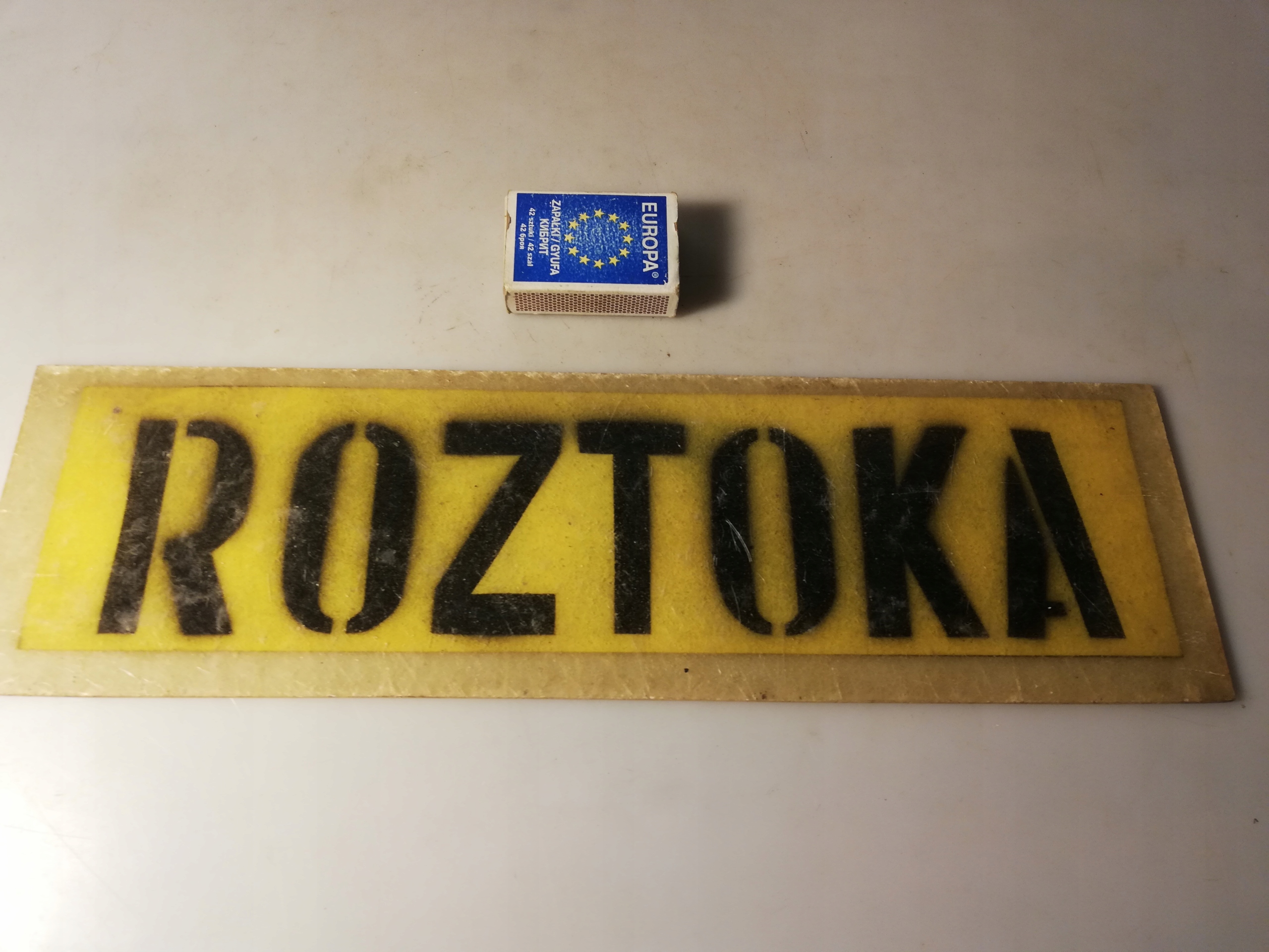 STARA TABLICA DWUSTRONNA z PRZYSTANKU PKS-u z PRL-u ROZTOKA 34x10cm