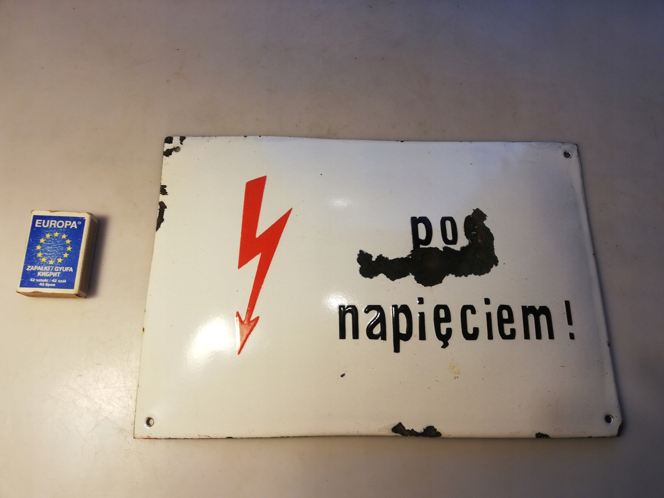 STARA TABLICA EMALIOWANA PO NAPIĘCIEM z PRL-u 30 cm x 20 cm