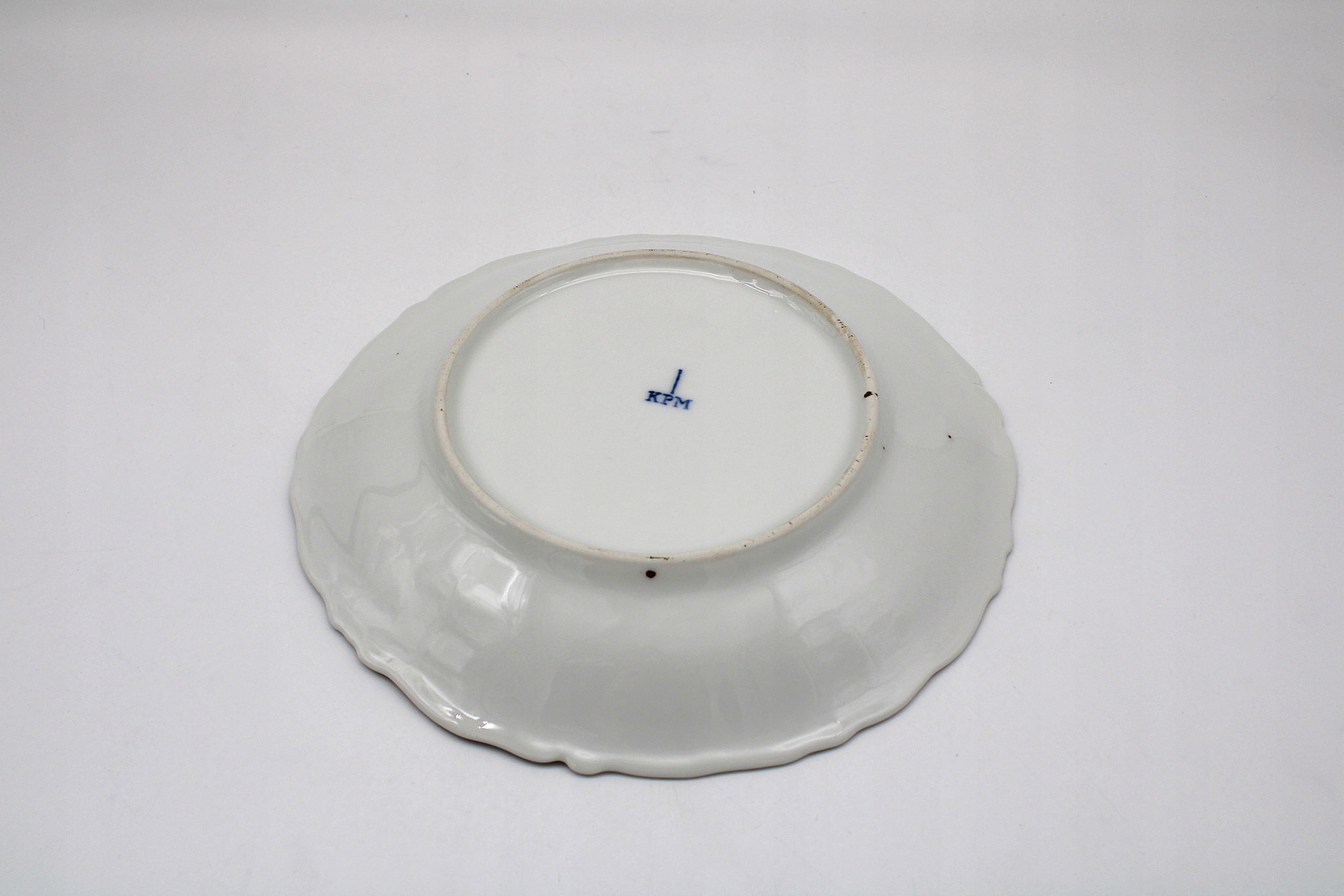 Я рекомендую стару антикварну порцелянову пластину KPM Waldenburg - Wałbrzych stary Silesia all Hand -Shated між 1840 - 1895 рр. **, наприклад, на скануванні на сканування на роки, він має природний тимчасовий абстрактор та природні невеликі фабричні недоліки