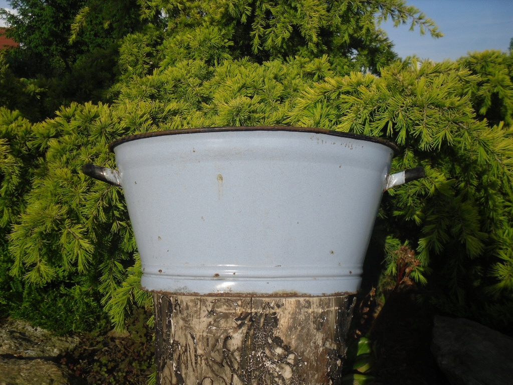 Ласкаво просимо на мій аукціон. На аукціонах я зазвичай пропоную вам предмети з періоду PRL. На цьому аукціоні я пропоную оригінальний емальований баланс - миску з часів республіки польської народ. Сталева кулькова емальована злегка бірюза/ синій майже як біла, з чорною межею та чорними кінцями для перенесення вуха. Оновити та профілюючись під верхнім край внизу. Ванна - це все з оббивкою, знебарвленням, расами, все внаслідок її використання та іржавого рейду та отвору на дні. Ванна не тісна. Дитина підписана. /Див. Фотографії /. P>
