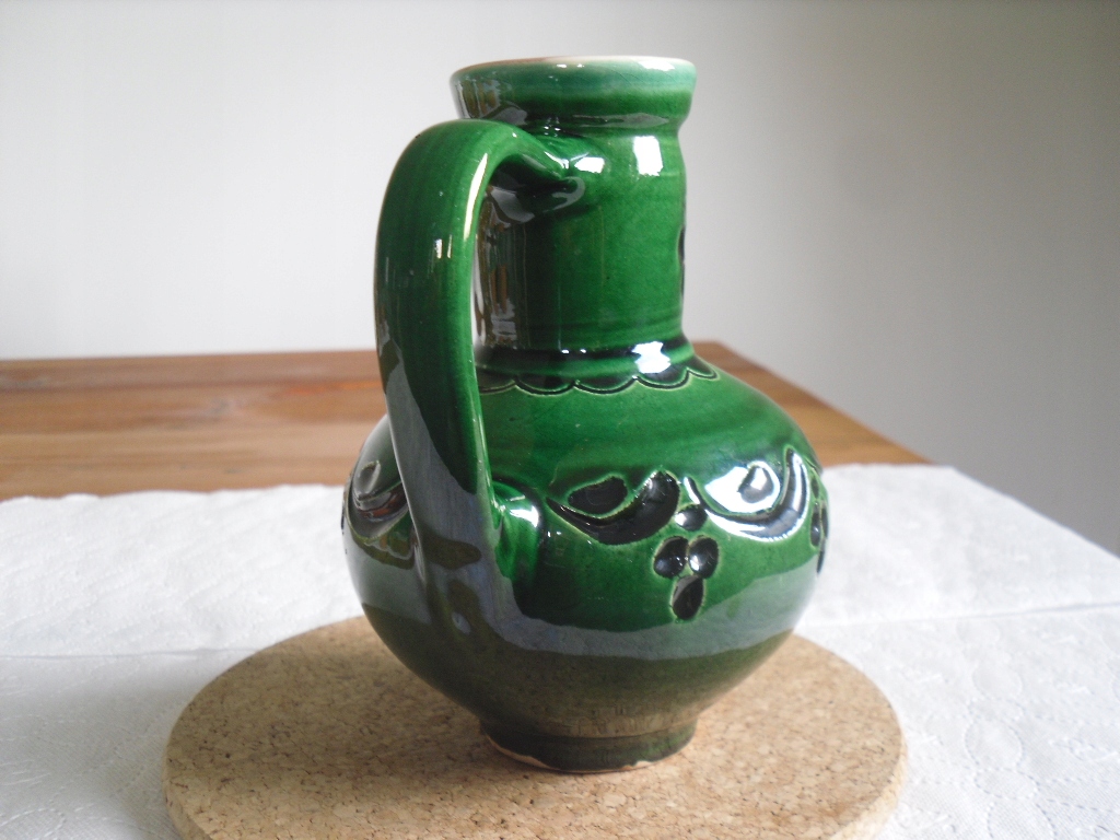 Привіт. На своїх аукціонах я зазвичай пропоную предмети з періоду PRL. На цьому аукціоні я пропоную прекрасний невеликий глечик з вазою з керамічної вази. Ваза з цікавою формою, дуже приємним глибоким кольором зелені та глибокими затемненими візерунками на поверхні. Вся ваза, без тріщин або пошкоджень, лише на підніжжя жалюгідної емалі. Прекрасна прикраса середовища проживання, саду, колекції. /видно на малюнках/
