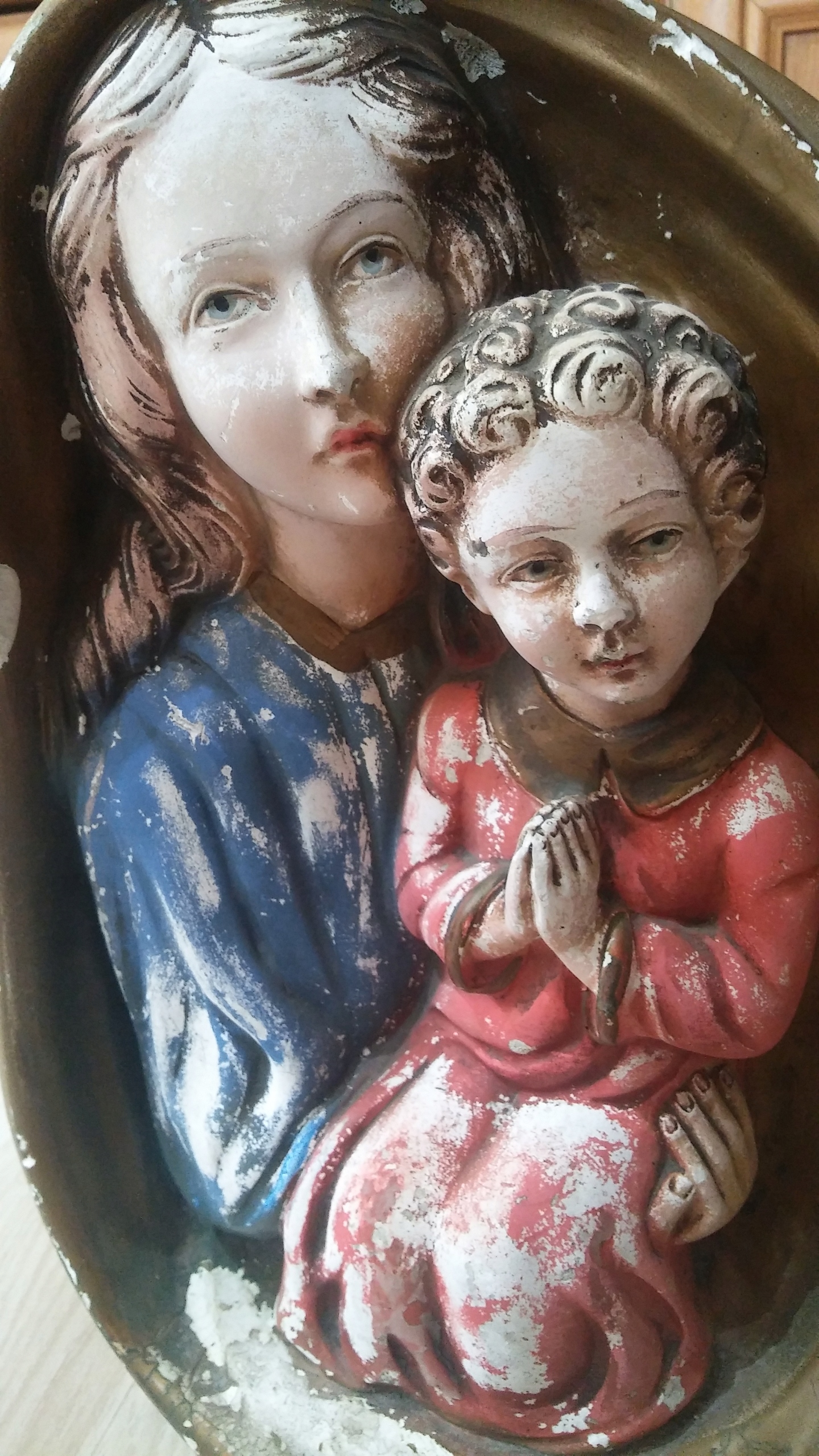 СТАРА ВЕЛИКА ФІГУРА М.Б. МАРІЯ БОЖА МАТИ З ДИТОМ, ПІДПИС