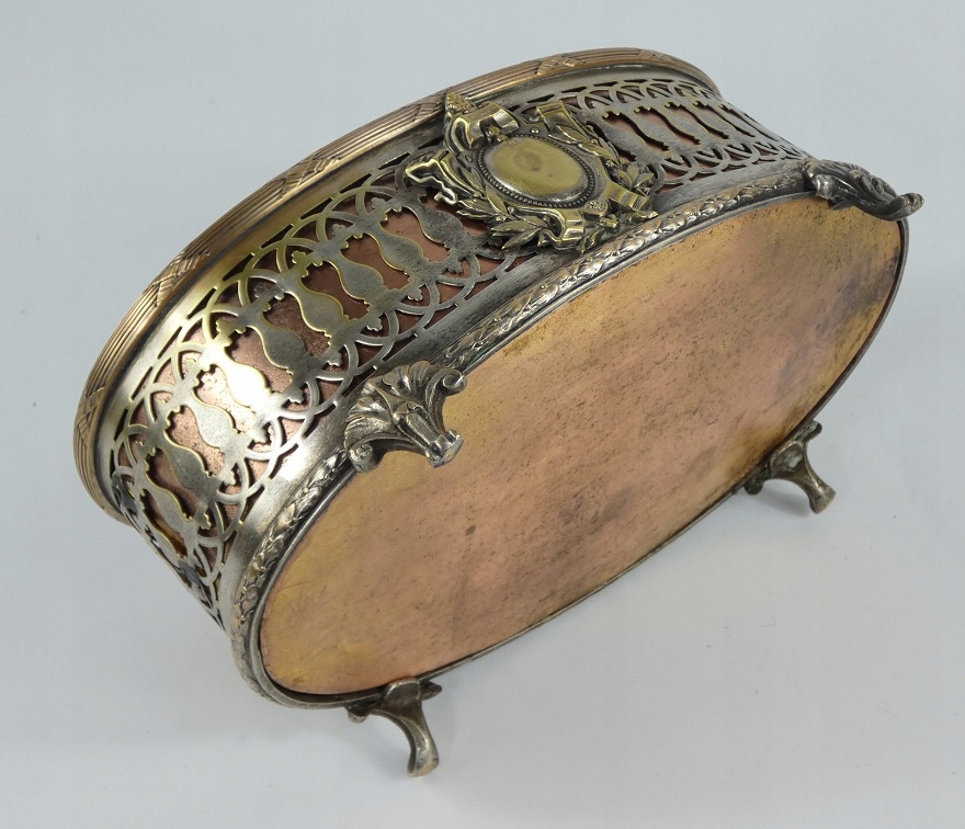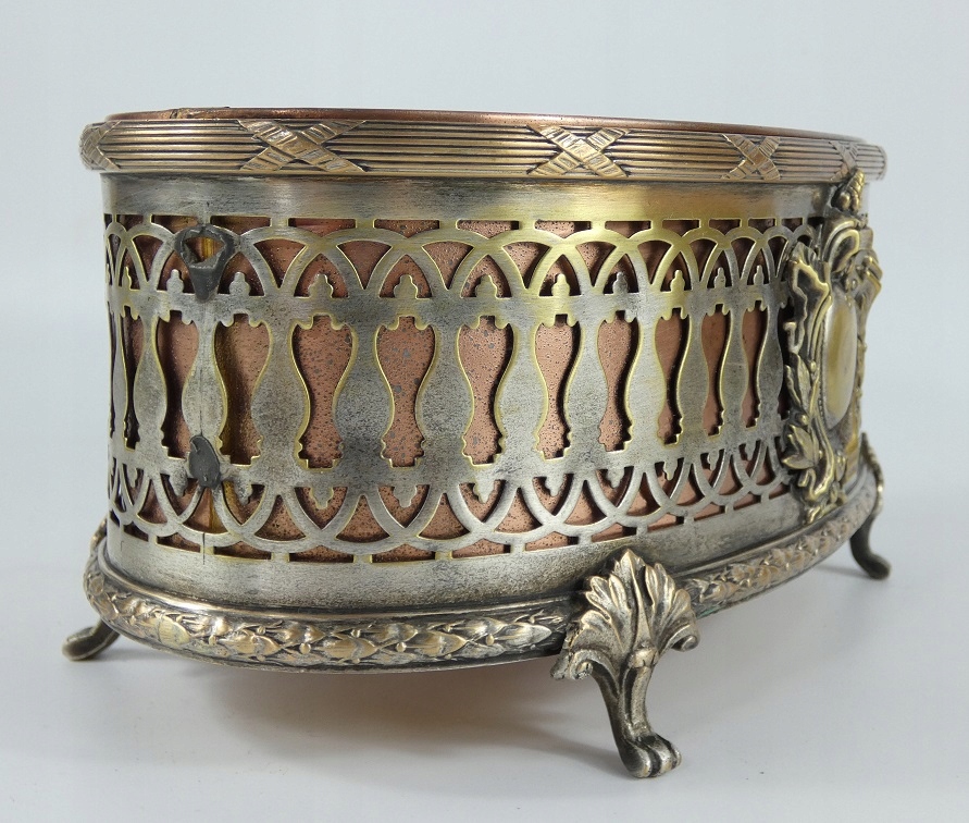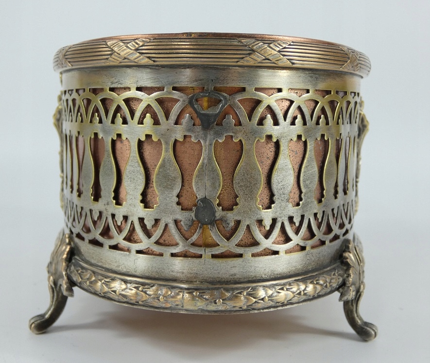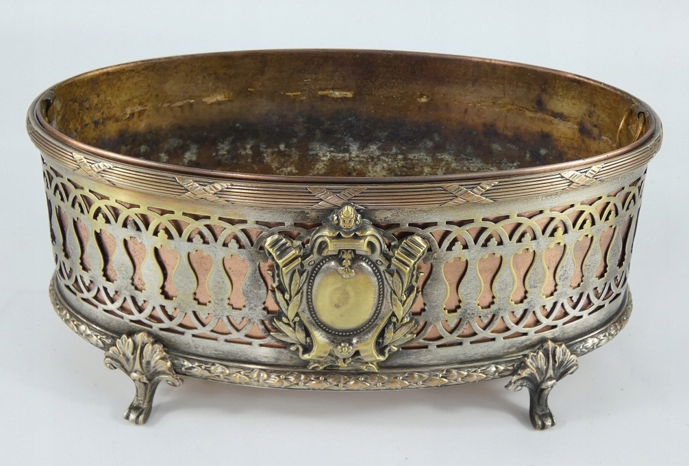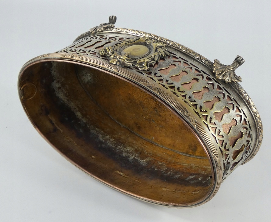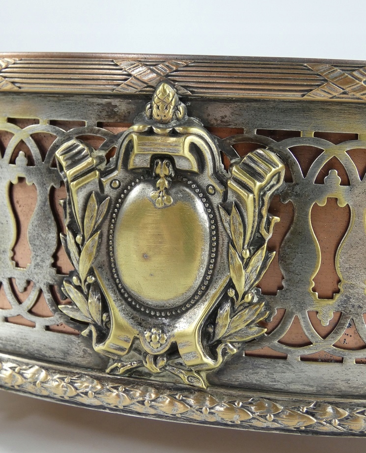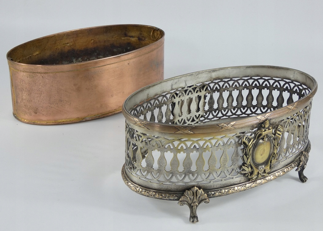 Стара відкрита робота Jardinier POT Латунна обкладинка Квіти Підписаний горщик