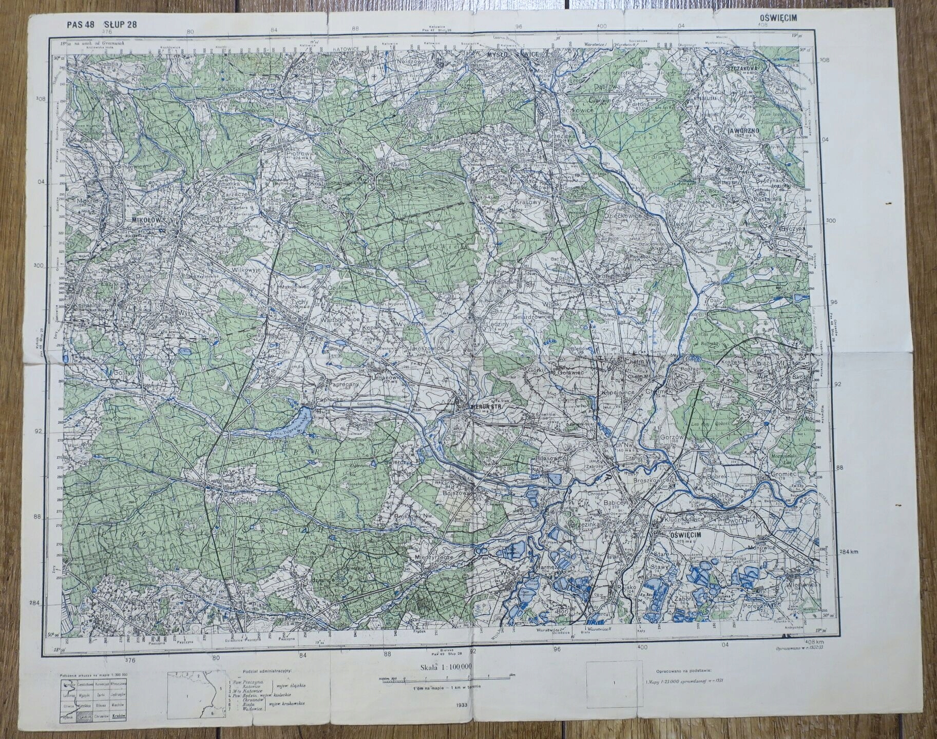 СТАРА ВІЙСЬКОВА КАРТА WIG OŚWIĘCIM 1933 BIERUŃ PAS 48 SŁUP 28 MIKOŁÓW