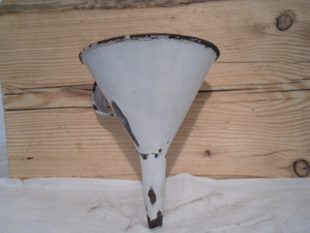 Ласкаво просимо на мій аукціон. На аукціонах я зазвичай пропоную вам речі часів Польської Народної Республіки. На цьому аукціоні я пропоную ОРИГІНАЛ стару воронку. Біла емальована воронка з дефектами емалі, які лише надають їй вигляду та характеру, а також змінюють колір. Кінчик наливки загнутий. /див. фото/.