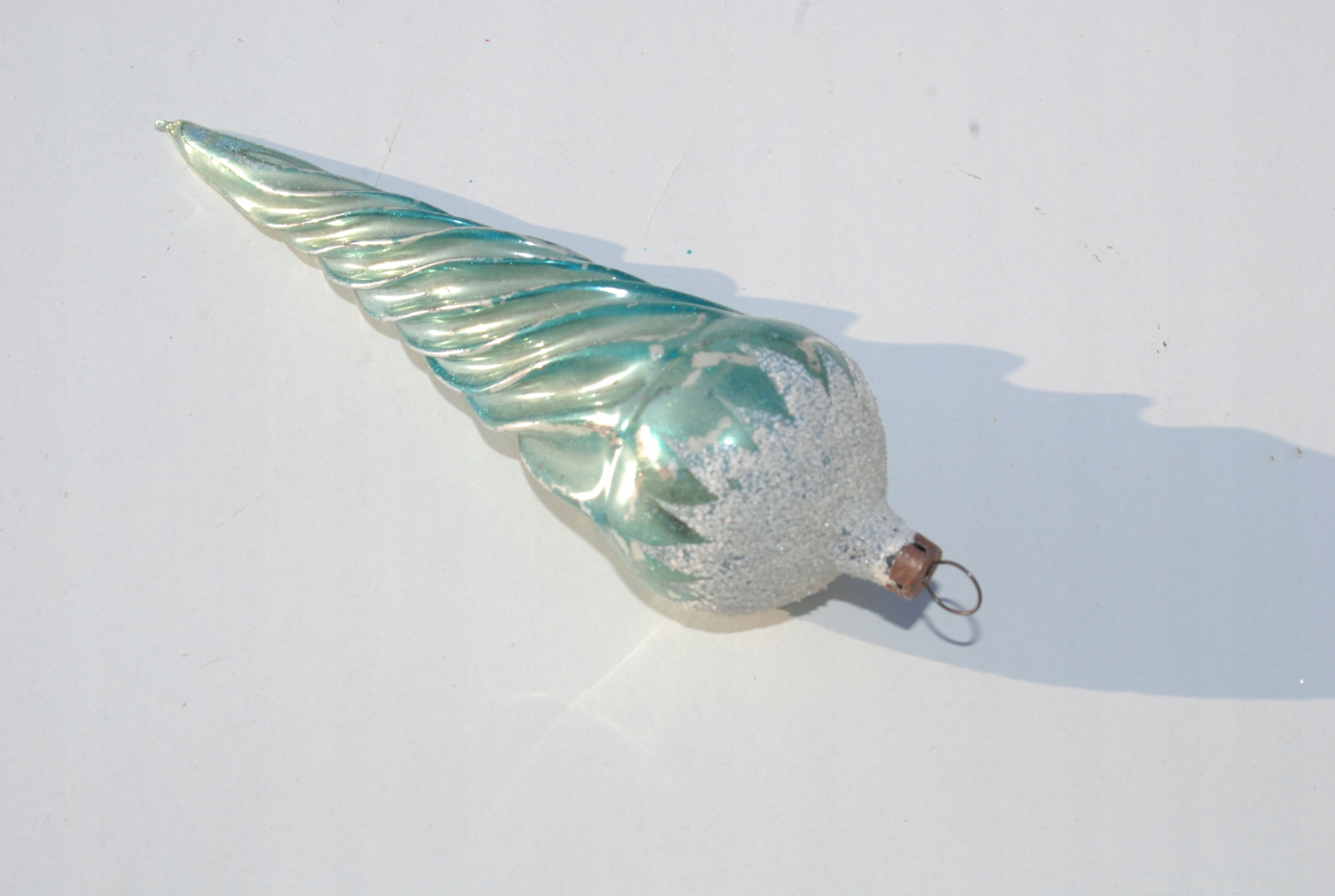 Стара ялинкова прикраса, бурулька, зелено-біла, унікальна ручна робота