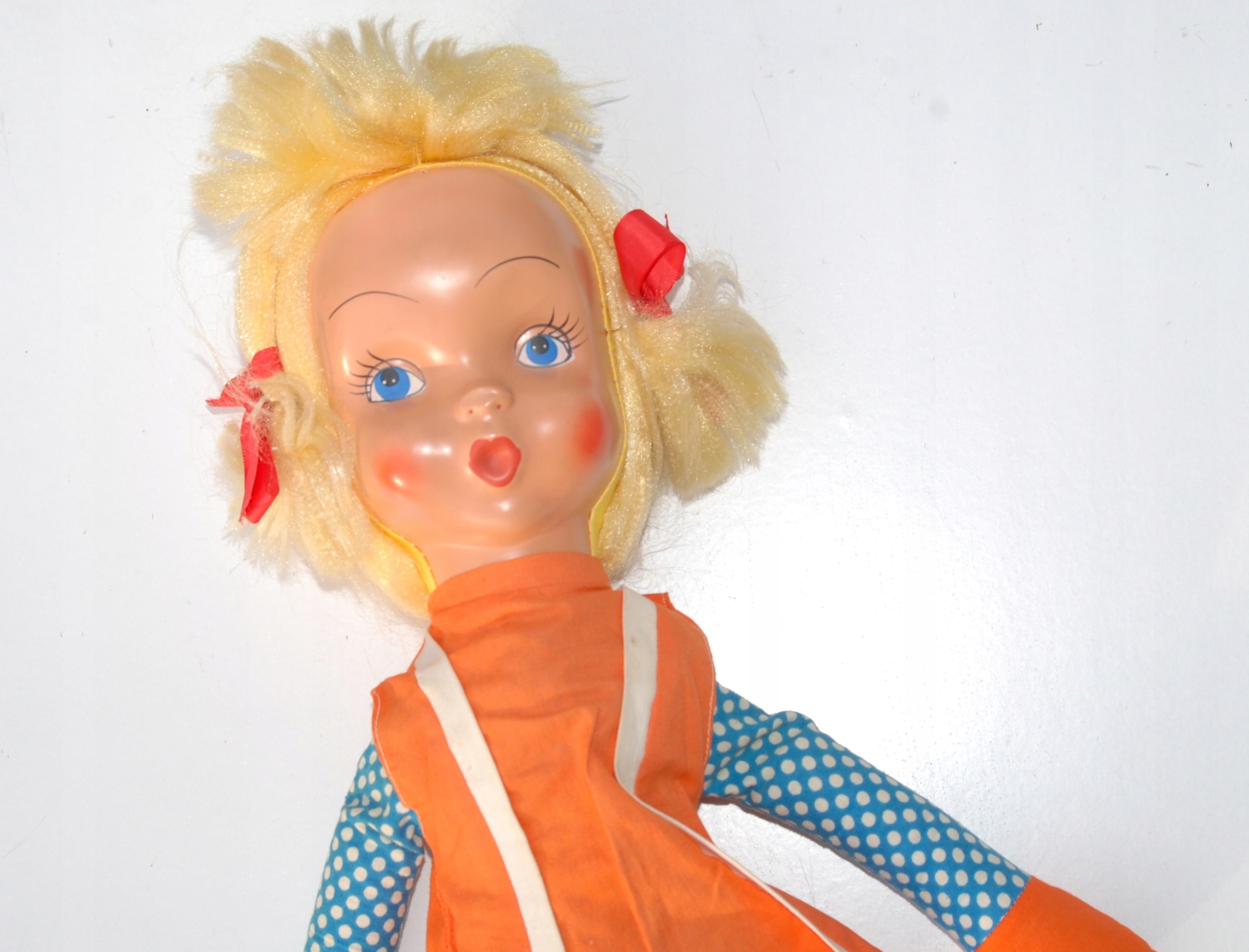 Stara zabawka długa duża lalka 73 cm maskotka pluszak lata 50/60 unikat