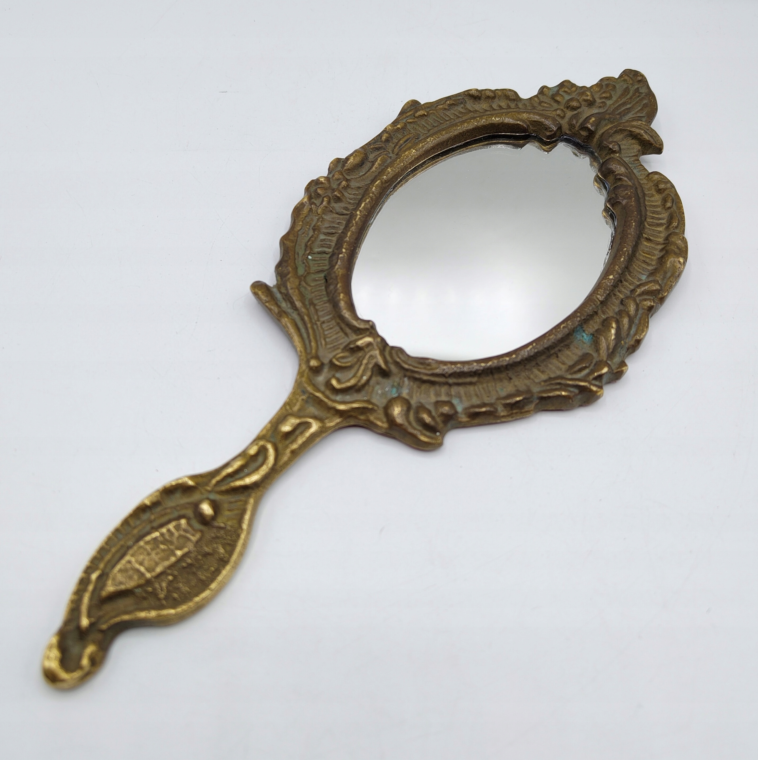 STARE barokowe podręczne lustereczko mosiądz 25cm