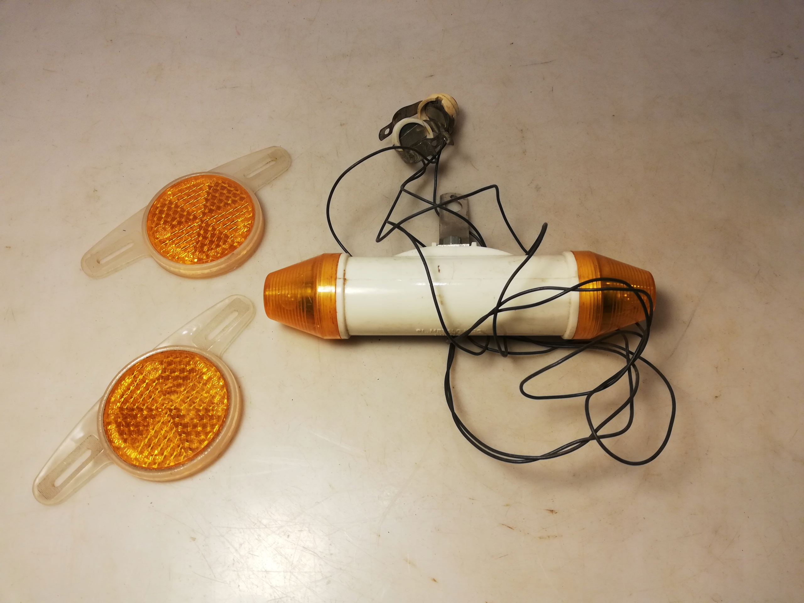 Старі поворотники ''Metalowiec - POZNAŃ'' ROMET WIGRY JUBILATE плюс світловідбивачі Solidarność Grudziądz 2 шт.