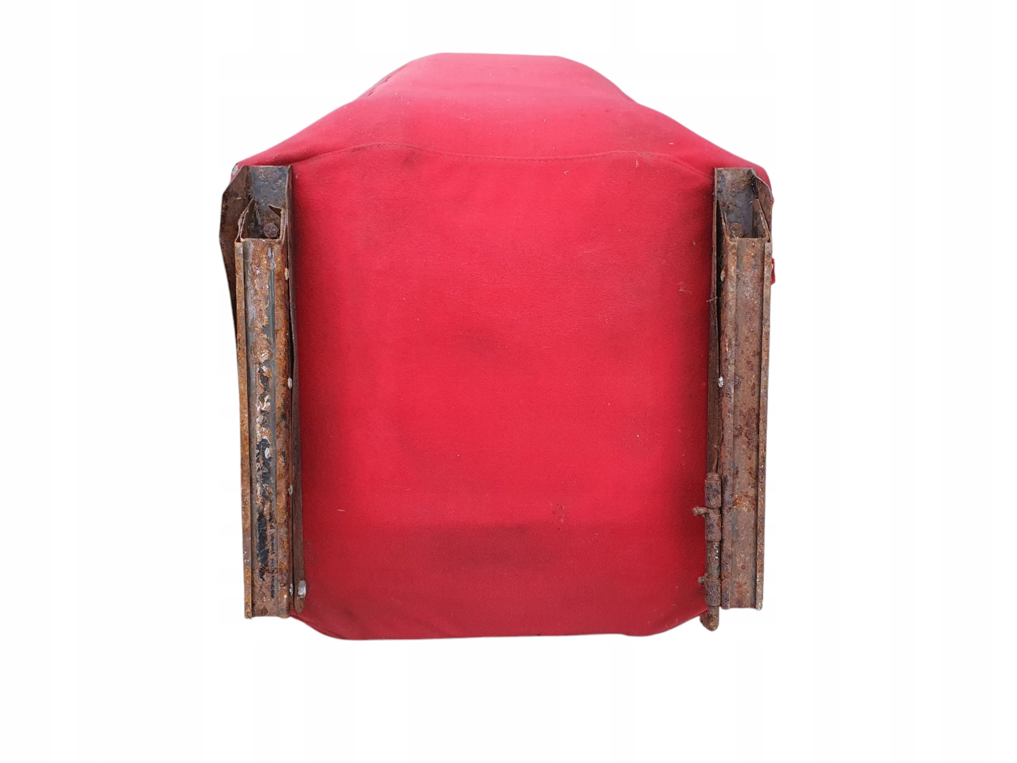 Крісло в стані, потребує ремонту, що видно на фото - на оббивці є сліди зносу, місцями помітні потертості. Незважаючи на це, конструкція міцна, і після належного оновлення вона все ще може виконувати свою функцію.
