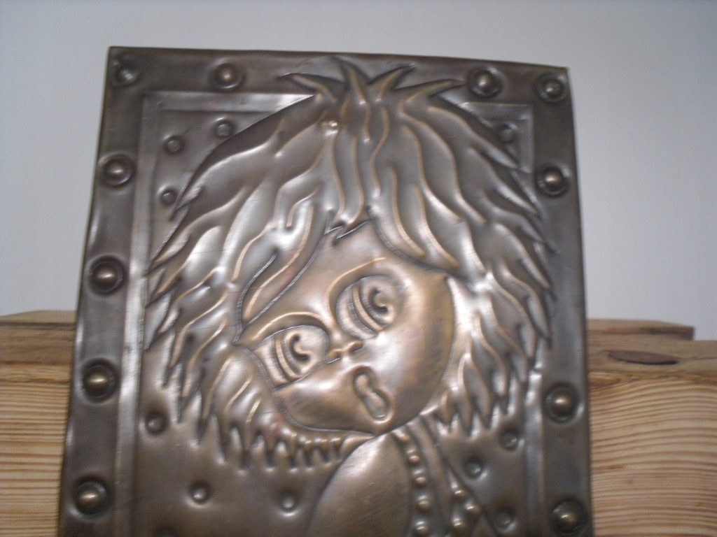Ласкаво просимо на мій аукціон. На аукціонах я зазвичай пропоную вам речі періоду Польської Народної Республіки. На даному аукціоні пропоную старовинну рельєфну латунну картину, барельєф із зображенням хлопчика, що пісяє, ОРИГІНАЛ маркування унітазу. Східне виробництво, 1970-ті роки, картина натягнута на фанеру з отвором для підвішування. Дуже хороший стан, без пошкоджень. На реверсі є штамп східною мовою, який не зовсім розбірливий. Подивіться та збільште фотографії. Запитуйте. Дивіться фотографії, ставте запитання.