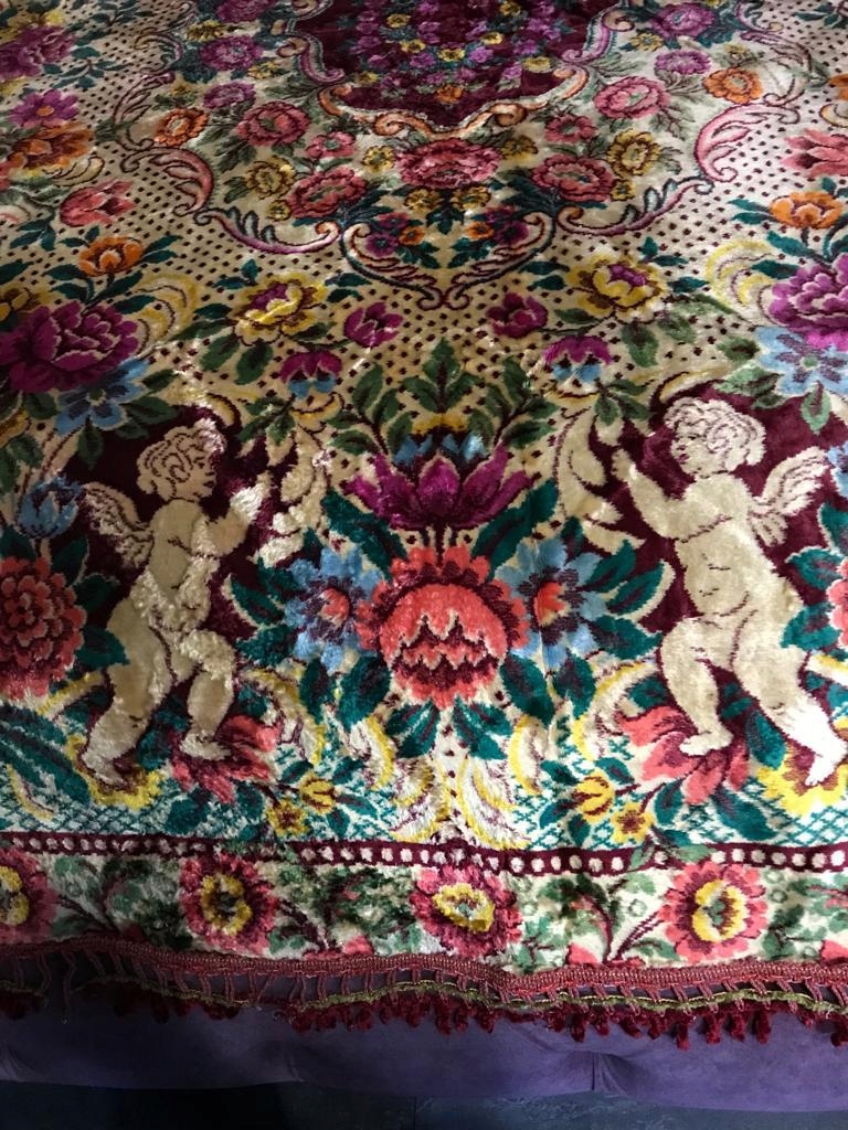 Дуже старовинне оксамитове гобеленеве покривало з фігурками янголів з Іспанії!!!