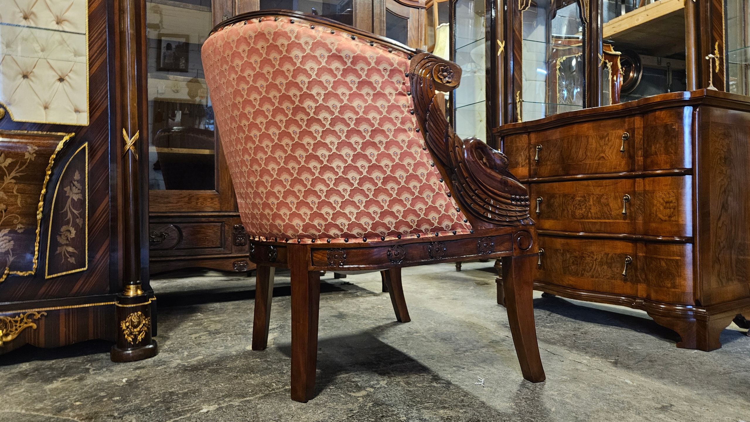 Старе приємне різьблене крісло, специфічний великий В. комфортно
