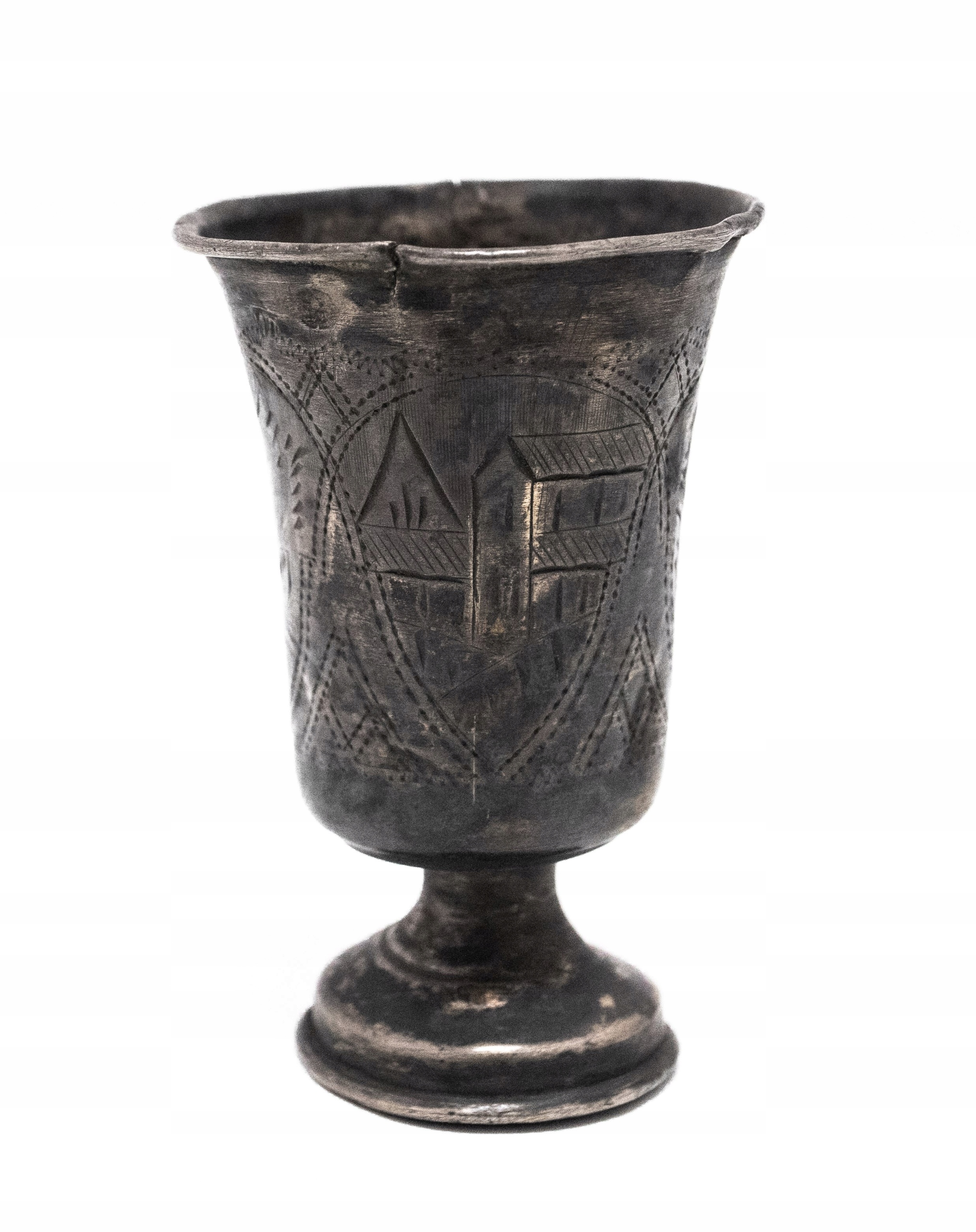 Скло, виготовлене з срібла. Пунка на основі. Вертикальна тріщина майже на всій висоті.