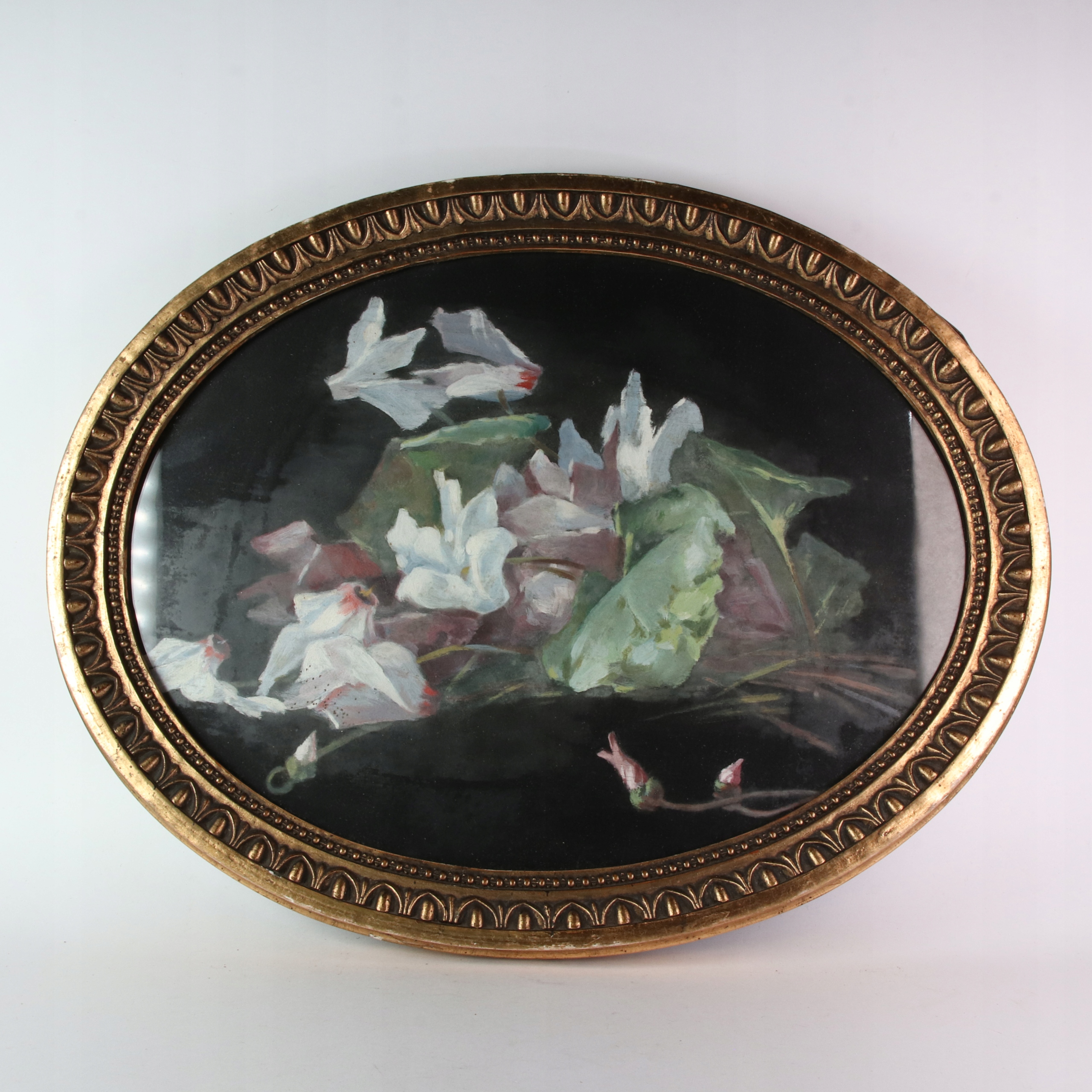 Старе зображення на шовковій тканині? Квіти ще золота рамка 46х36