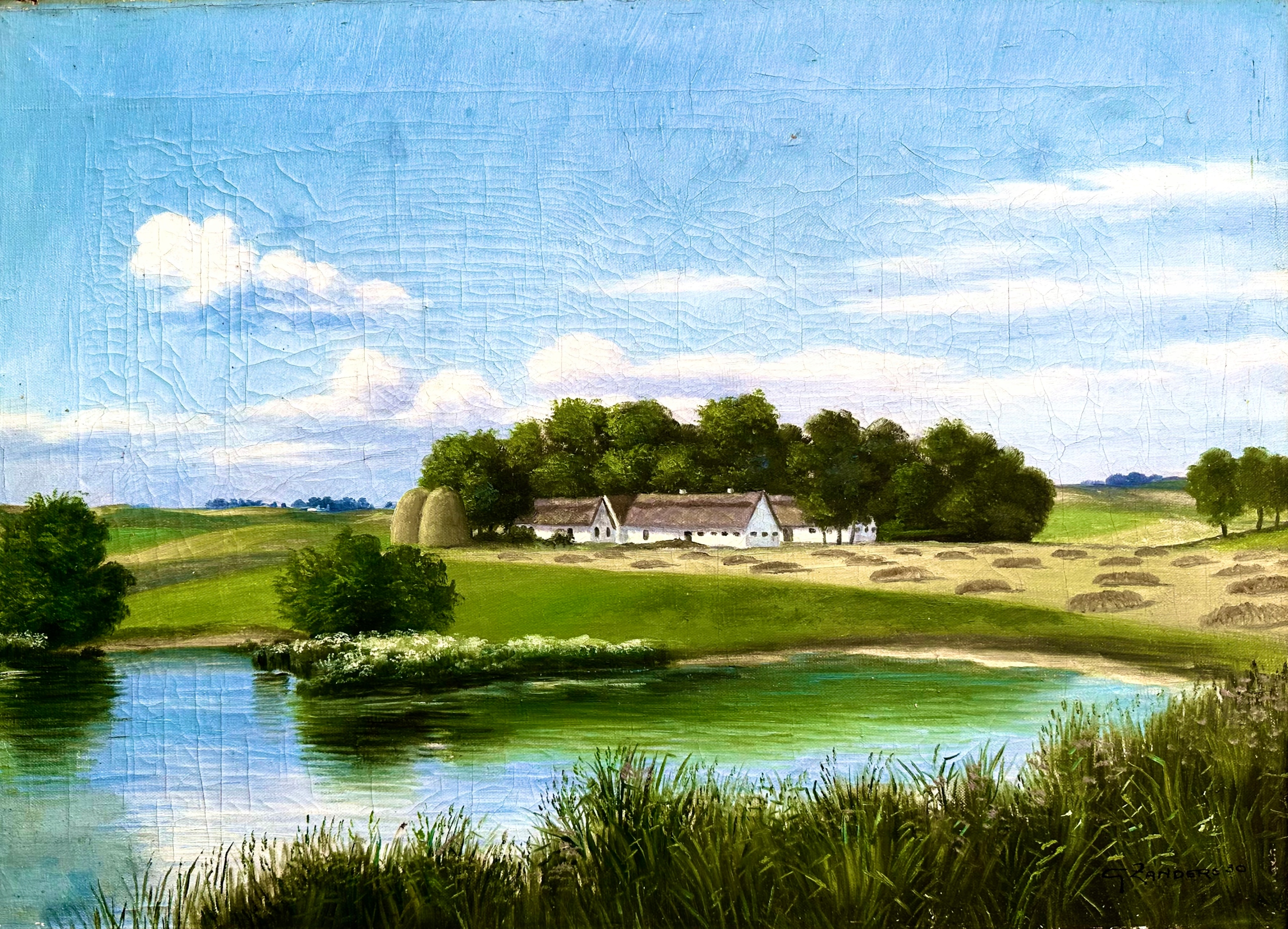 СТАРІ ДАЧИ БІЛЯ СТАВКУ В СІЛЬСЬКОМУ ПЕЙЗАЖІ